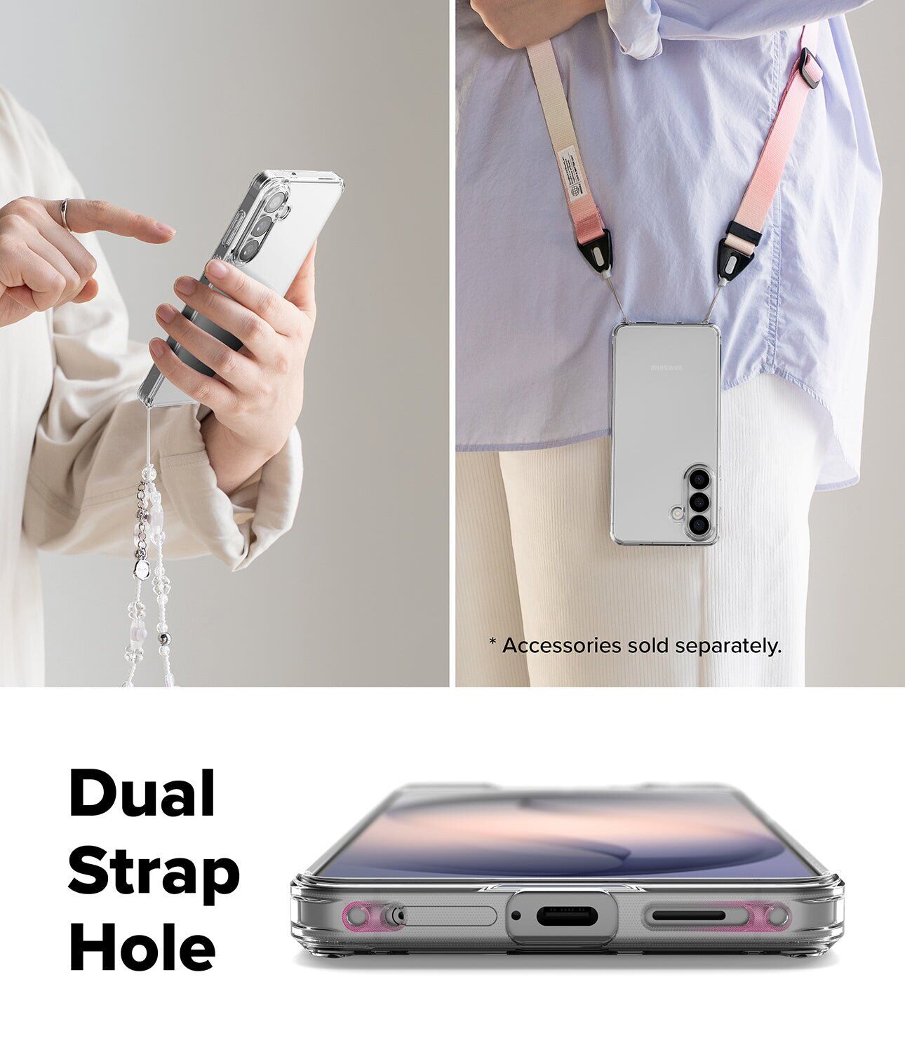 Чехол-накладка серии Fusion от Ringke – это надежный и качественный защитный аксессуар, способный максимально снизить риск повреждения вашего Samsung Galaxy S26 (S942) в результате сильных ударов, падений и просто естественного износа. Конструкция имеет 2-х составную компоновку из материалов разной жесткости: основа выполнена из прочного поликарбоната, бампер по периметру – эластичный силикон (TPU). Производителем предусмотрено наличие необходимых отверстий для камеры и разъемов, клавиши же будут прикрыты мягкими дубликаторами. В надетом состоянии чехол немного выступает над плоскостью лицевой поверхности, образуя небольшой защитный бортик, позволяющий свободно класть смартфон экраном вниз на любую ровную поверхность, без опасности его повредить.