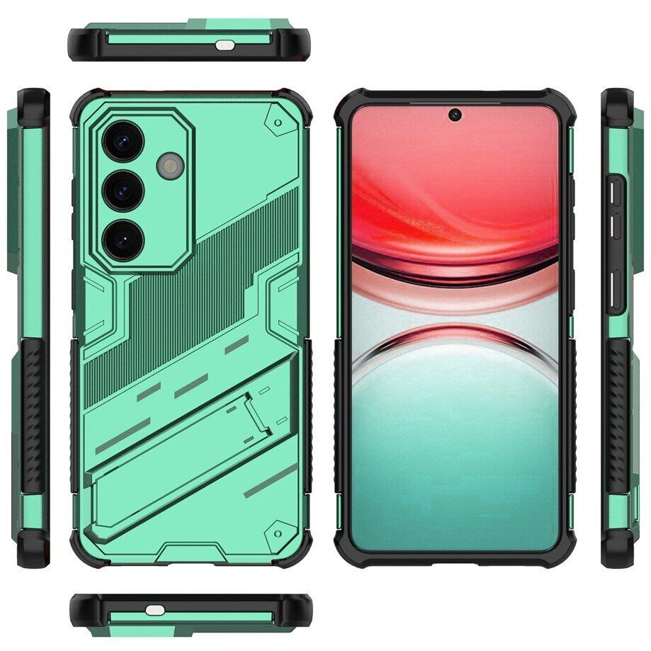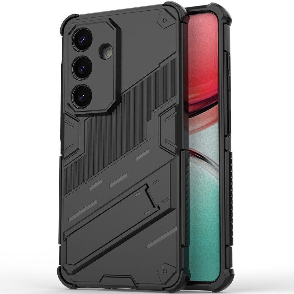 Чехол-накладка Deexe Bibercas – это эффективное решение для защиты корпуса Samsung Galaxy S26 от грязи и различных механических повреждений, таких как царапины, потёртости, сколы и трещины. Его конструкция состоит из прочного пластикового панциря и эластичного силиконового бампера по периметру, что обеспечивает повышенные амортизационные характеристики, позволяя без последствий переносить падения с небольшой высоты. Поверхность чехла приятна на ощупь и не собирает отпечатки, тогда как рифлёная фактура спинки повышает ухватистость в ладони. Подогнанный точно под форму и размеры смартфона, чехол плотно на нём сидит, и не мешает свободному доступу к портам и камере. Для клавиш здесь имеются мягкие, чувствительные к нажатию пылезащитные дубликаторы. На спинке можно найти откидывающуюся ножку-подставку, с помощью которой можно смотреть видео или читать с экрана, удобно разместив устройство на любой ровной поверхности.