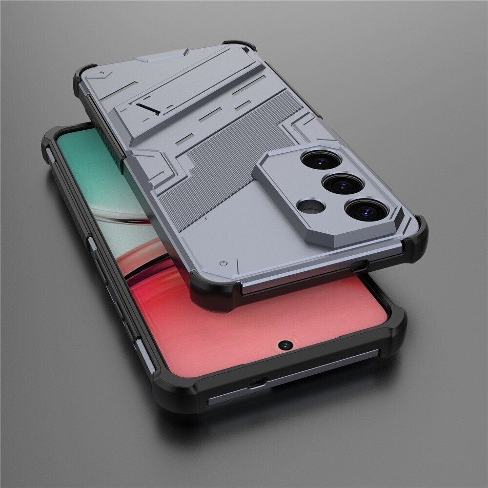 Чехол-накладка Deexe Bibercas – это эффективное решение для защиты корпуса Samsung Galaxy S26 от грязи и различных механических повреждений, таких как царапины, потёртости, сколы и трещины. Его конструкция состоит из прочного пластикового панциря и эластичного силиконового бампера по периметру, что обеспечивает повышенные амортизационные характеристики, позволяя без последствий переносить падения с небольшой высоты. Поверхность чехла приятна на ощупь и не собирает отпечатки, тогда как рифлёная фактура спинки повышает ухватистость в ладони. Подогнанный точно под форму и размеры смартфона, чехол плотно на нём сидит, и не мешает свободному доступу к портам и камере. Для клавиш здесь имеются мягкие, чувствительные к нажатию пылезащитные дубликаторы. На спинке можно найти откидывающуюся ножку-подставку, с помощью которой можно смотреть видео или читать с экрана, удобно разместив устройство на любой ровной поверхности.