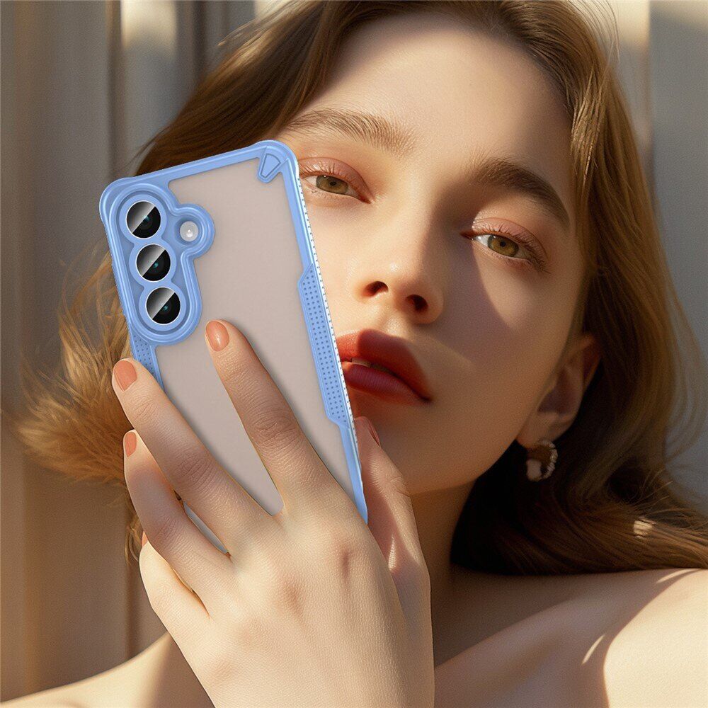 UniCase Falcon Frame – это надежное и функциональное решение для защиты вашего Samsung Galaxy S26. Аксессуар изготовлен из прочного поликарбоната в сочетании с эластичным TPU, что обеспечивает баланс между жесткостью и гибкостью, необходимыми для амортизации ударов. Полупрозрачная матовая поверхность не только придает телефону современный и стильный внешний вид, но и предотвращает появление отпечатков пальцев и мелких царапин. Интегрированные воздушные подушки в углах конструкции поглощают энергию удара, снижая риск повреждения смартфона при случайных падениях. Приподнятые края корпуса формируют дополнительный барьер вокруг экрана и камеры, защищая их от контакта с твердыми поверхностями. Эргономичная форма и прорезиненные боковые грани улучшают хват, предотвращая случайное выскальзывание устройства из рук. Точные вырезы обеспечивают полный доступ ко всем портам, кнопкам и динамикам, не создавая препятствий при использовании аксессуаров. Благодаря компактным габаритам и легкому весу чехол не утяжеляет телефон и сохраняет его удобство в эксплуатации.