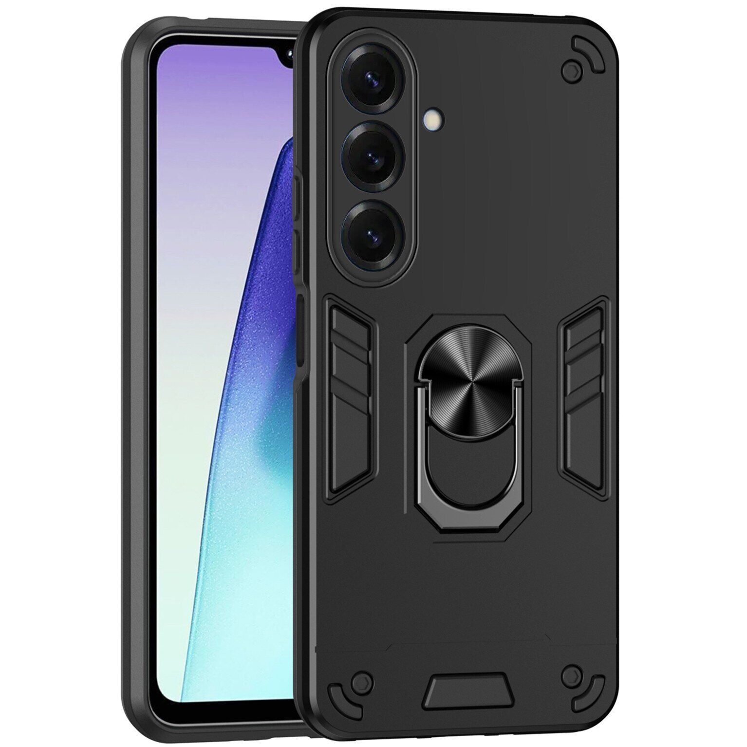 Deexe Hybrid Shell – это чехол с повышенными защитными характеристиками, призванный обеспечить полную сохранность корпуса Samsung Galaxy S26 Plus в процессе ежедневного использования. В его основе лежит двусоставная компоновка из прочного пластика и эластичного силикона (TPU). Сочетание двух материалов разной жесткости существенно повышает амортизационные характеристики изделия и позволяет без проблем справляться не только с царапинами и потёртостями, но даже трещинами и сколами, смягчая силу удара при падении на пол. Шероховатая фактура внешнего покрытия не собирает на себе отпечатки пальцев, а рифлёные элементы на спинке ещё и повышают ухватистость в руке. Важным элементом конструкции является специальное кольцо на спинке, способное выполнять сразу несколько полезных задач: во-первых, в кольцо можно просунуть палец, чтобы увереннее держать смартфон в руке; во-вторых, откинув кольцо, его можно использовать в качестве удобной подставки; ну и в-третьих, металлический элемент кольца позволяет свободно фиксировать устройство на панели магнитного автомобильного держателя, без необходимости нанесения специальной наклейки.