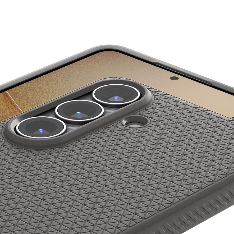 Spigen SGP Liquid Air — это тонкий противоударный чехол для Samsung Galaxy S26 Plus (S947), изготовленный из гибкого термопластичного полиуретана с оригинальной гравировкой в форме треугольников. Этот дизайн не только придаёт аксессуару современный вид, но и улучшает его защитные функции, улучшая сцепление с рукой, что снижает шанс выпадения устройства из ладони. Чехол соответствует военным стандартам MIL-STD, выдерживает падения с высоты до 1,2 метра и, несмотря на свои защитные свойства, остаётся достаточно тонким, добавляя минимальный объем устройству.