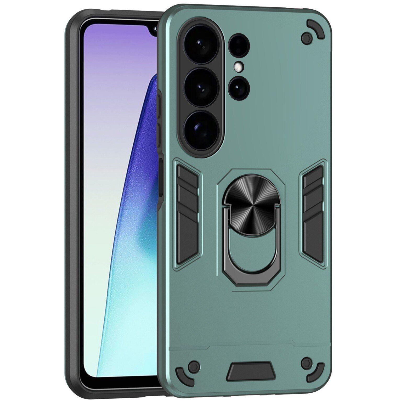 Deexe Hybrid Shell – это чехол с повышенными защитными характеристиками, призванный обеспечить полную сохранность корпуса Samsung Galaxy S26 Ultra в процессе ежедневного использования. В его основе лежит двусоставная компоновка из прочного пластика и эластичного силикона (TPU). Сочетание двух материалов разной жесткости существенно повышает амортизационные характеристики изделия и позволяет без проблем справляться не только с царапинами и потёртостями, но даже трещинами и сколами, смягчая силу удара при падении на пол. Шероховатая фактура внешнего покрытия не собирает на себе отпечатки пальцев, а рифлёные элементы на спинке ещё и повышают ухватистость в руке. Важным элементом конструкции является специальное кольцо на спинке, способное выполнять сразу несколько полезных задач: во-первых, в кольцо можно просунуть палец, чтобы увереннее держать смартфон в руке; во-вторых, откинув кольцо, его можно использовать в качестве удобной подставки; ну и в-третьих, металлический элемент кольца позволяет свободно фиксировать устройство на панели магнитного автомобильного держателя, без необходимости нанесения специальной наклейки.