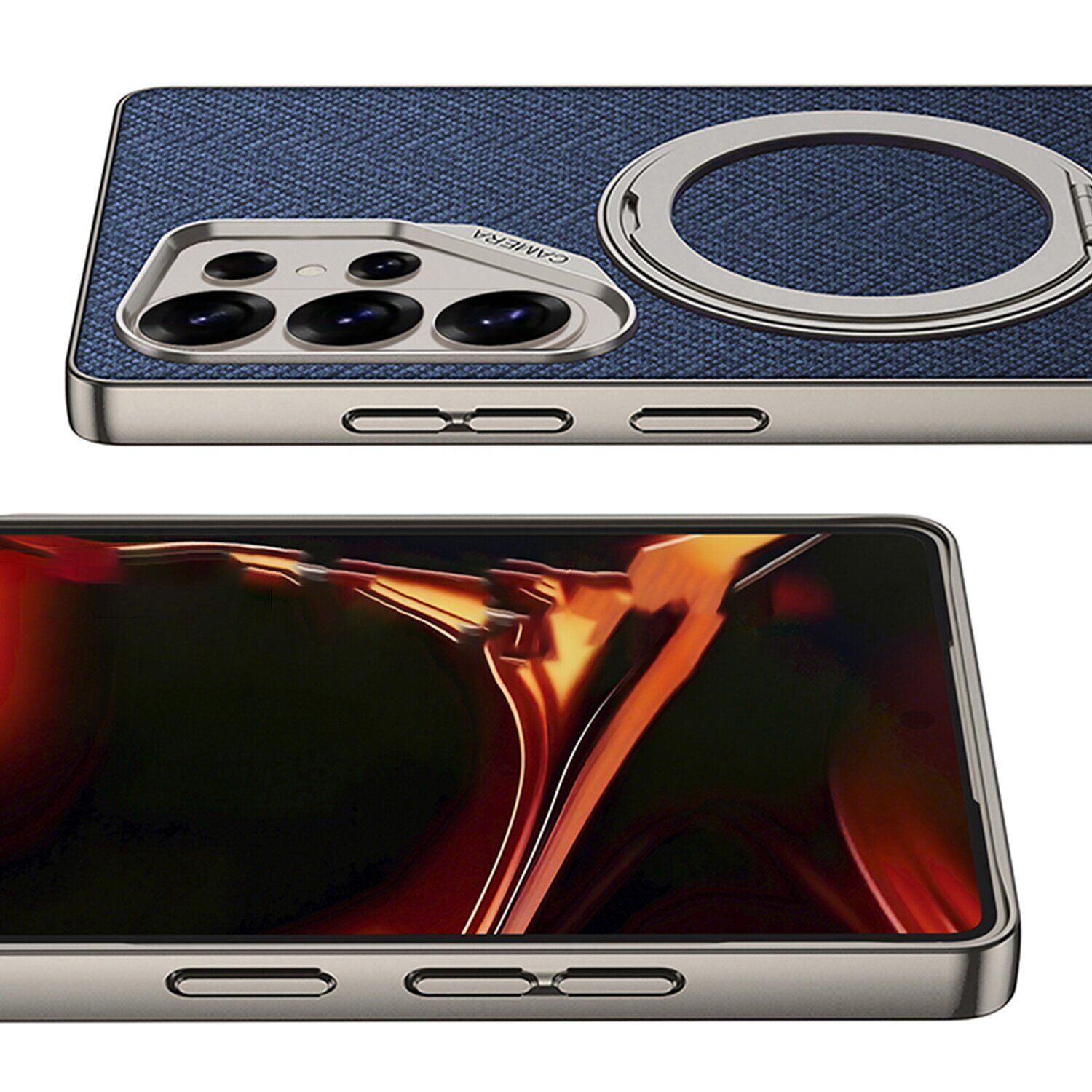 Защитный чехол GKK Fabric Magnetic для Samsung Galaxy S26 Ultra сочетает многослойную конструкцию и практичные материалы, обеспечивая аккуратное сохранение внешнего вида устройства при повседневной эксплуатации. Основа выполнена из прочного поликарбоната, который поддерживает форму корпуса, а гибкие края из TPU помогают смягчать последствия случайных ударов. Внешняя поверхность дополнена покрытием Soft-Touch с матовой текстурой, благодаря чему устройство комфортно ощущается в руках и не собирает заметные следы. Тыльная часть оформлена тканевой вставкой из нейлона — материал пропускает воздух, устойчив к износу и придаёт корпусу сдержанный внешний вид. Встроенная магнитная подставка вращается и позволяет устанавливать смартфон под разными углами для просмотра видео или видеосвязи без использования дополнительных аксессуаров. Конструкция корректно повторяет форму модели и не препятствует подключению кабелей и использованию камер. Выступающие бортики по периметру экрана и блока камер создают небольшой зазор между корпусом устройства и плоскими поверхностями, снижая вероятность появления царапин и потертостей.