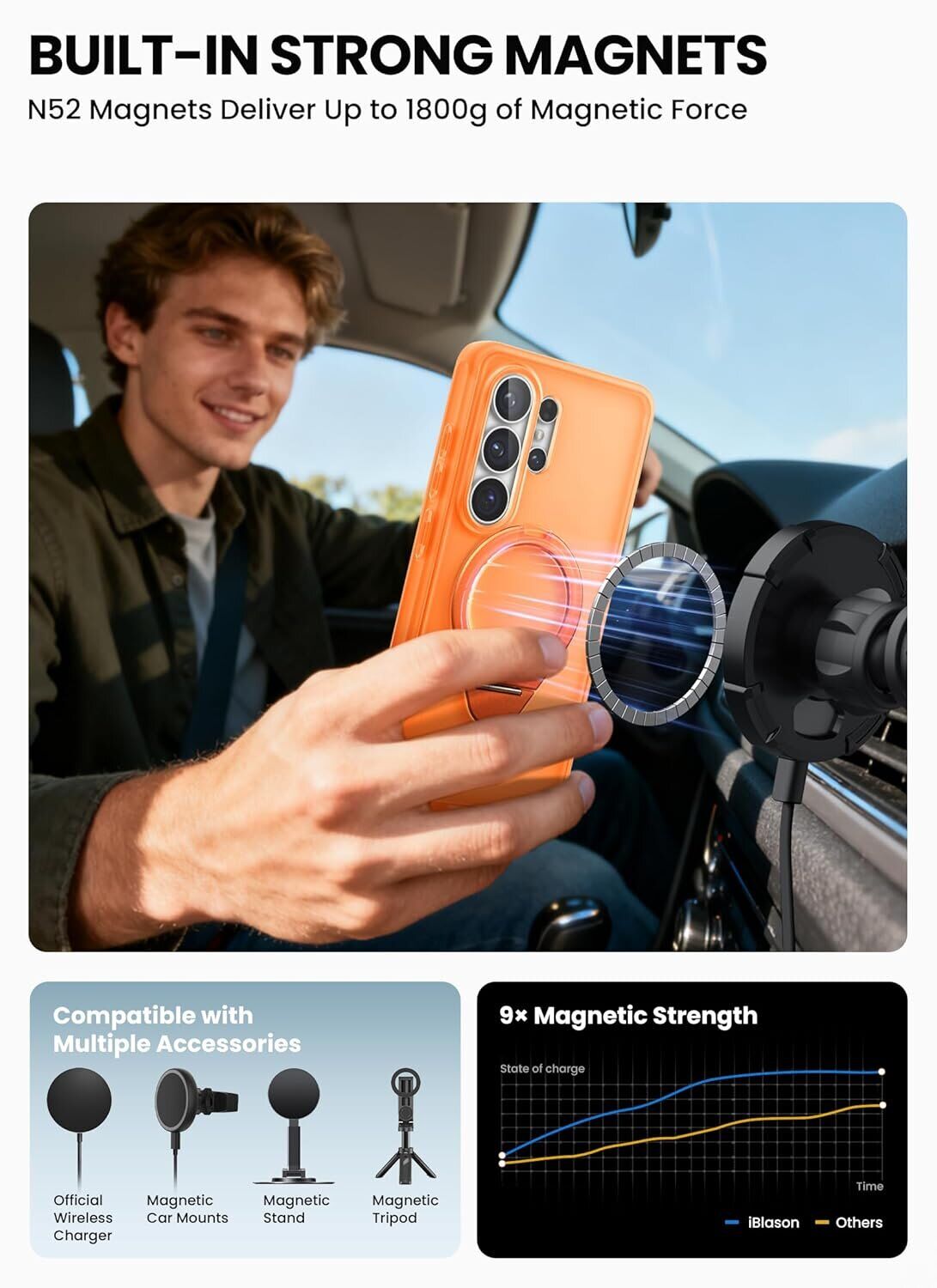 • Мощные магниты N52 с надежной фиксацией аксессуаров MagSafe;