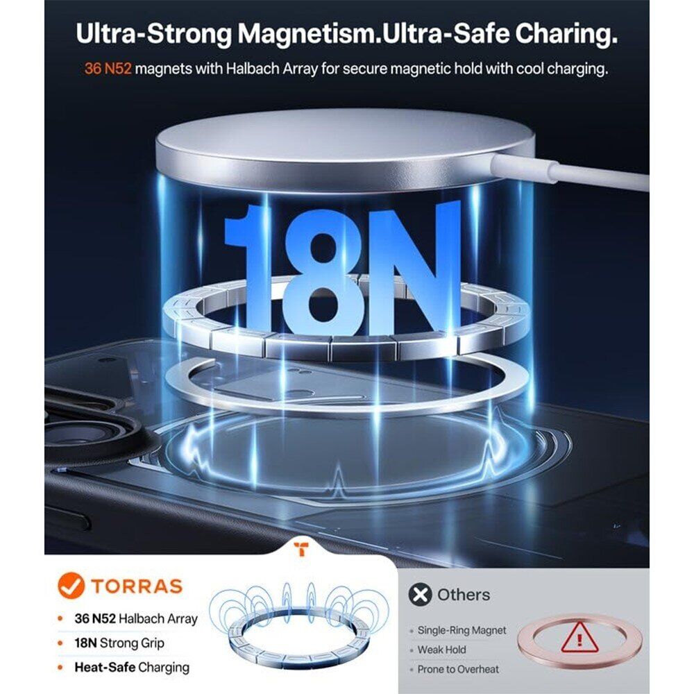 Защитный чехол TORRAS Guardian-Mag (with MagSafe) – это практичное решение для тех, кто ищет надежную защиту Samsung Galaxy S26 Ultra без ущерба для удобства использования. Конструкция выполнена из комбинации прочного поликарбоната и эластичного термополиуретана, что позволяет совместить жесткость корпуса с функцией поглощения ударов. Чехол точно повторяет форму смартфона, обеспечивая плотное прилегание и свободный доступ ко всем разъемам и кнопкам. Благодаря встроенным магнитам, он совместим с технологией MagSafe, что дает возможность пользоваться беспроводной зарядкой и магнитными аксессуарами. Матовая текстура поверхности устойчива к отпечаткам пальцев, а также обеспечивает надежное сцепление с рукой. Продуманная конструкция с утолщенными краями дополнительно защищает экран и камеру от случайных повреждений в процессе ежедневного использования.