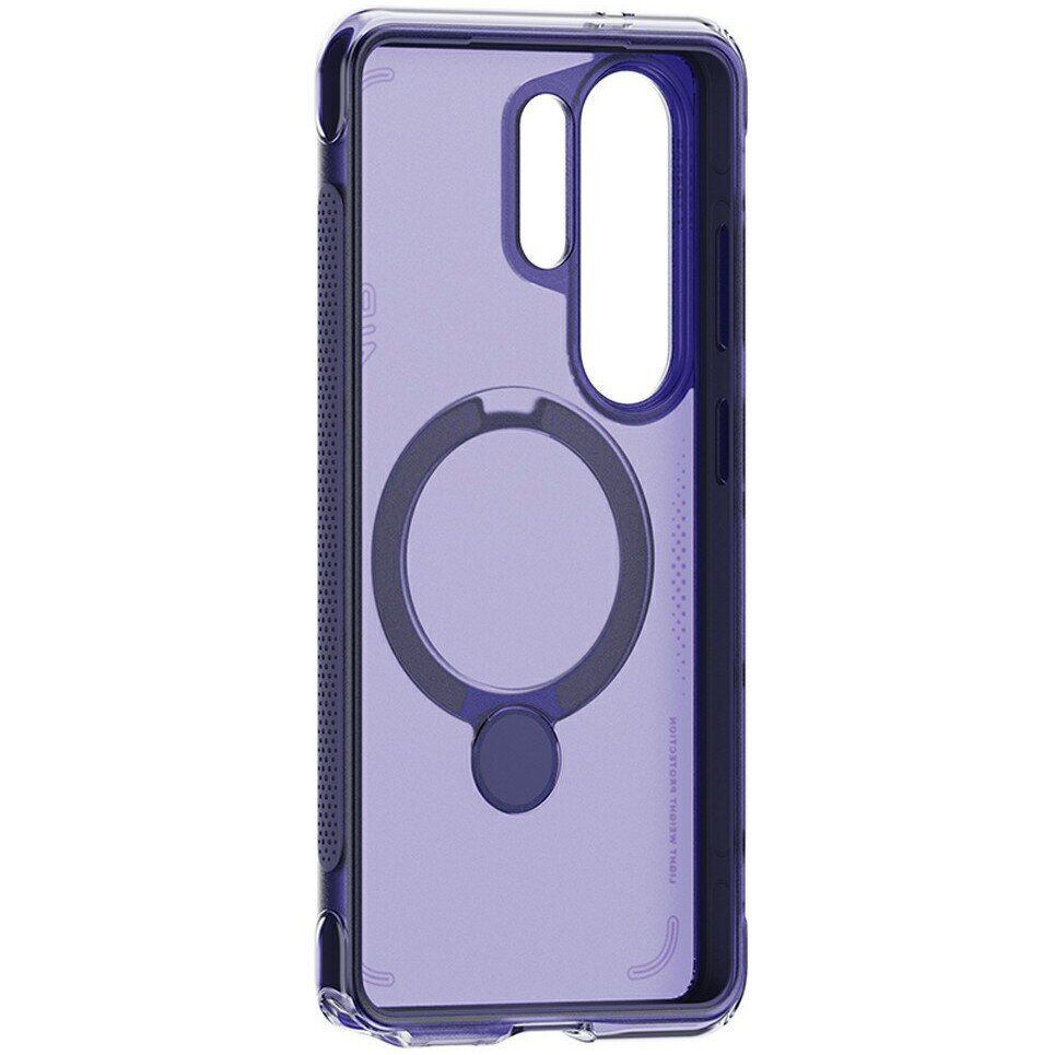 TORRAS Ostand Q3 Air – это премиум-чехол для Samsung Galaxy S26 Ultra, который отлично сочетает в себе стильный и современный дизайн, практичную конструкцию и высокие стандарты защиты. В качестве основных материалов здесь выступают прочный поликарбонат и эластичный силикон (TPU) – такое сочетание компонентов разной жесткости повышает амортизационные характеристики изделия, позволяя лучше смягчать удары и падения с высоты. Прозрачная спинка чехла позволяет тому не скрывать оригинальный дизайн смартфона, а наличие специальных фактурных насечек на боковых гранях улучшит хват в руке, минимизируя вероятность случайно его выронить. Для всех разъемов чехла в конструкции предусмотрены необходимые вырезы, тогда как клавиши будут прикрыты специальными дубликаторами. Отдельного внимания заслуживает специальная металлическая вставка на спинке – это не только подставка, откинув которую можно удобно разместить смартфон на столе, но также функциональный элемент, оснащенный встроенными неодимовыми магнитами и обеспечивающий совместимость чехла с Magsafe устройствами.