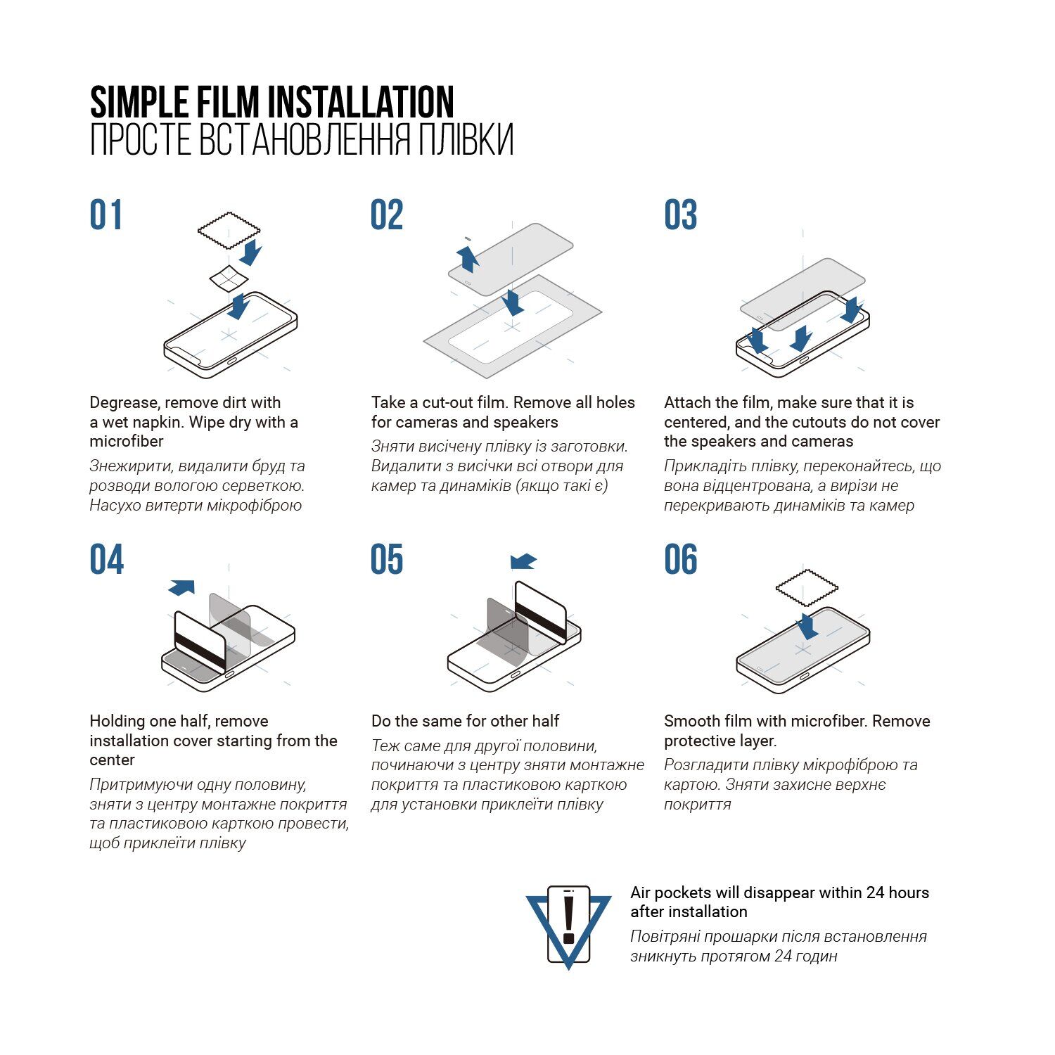 Комплектация пленки (наклейки) Пленка на экран, Средства для установки