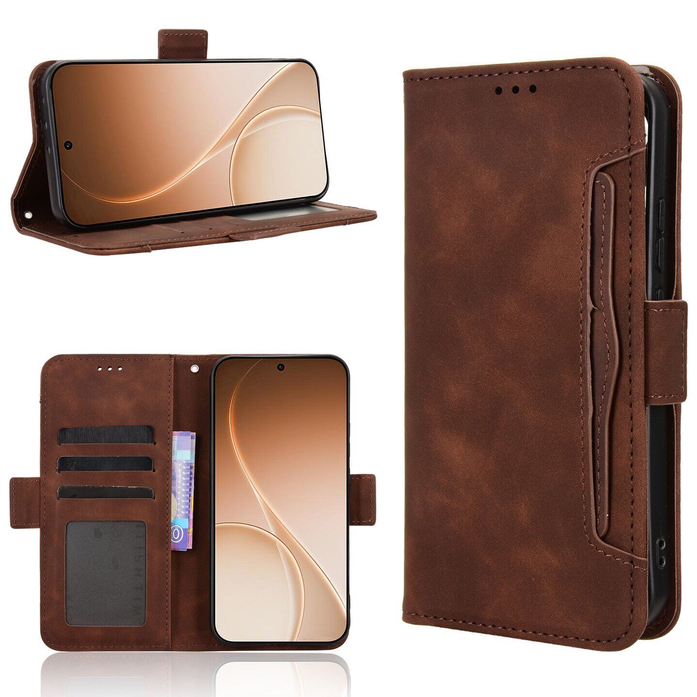 Чехол-книжка с карманами Deexe Wallet Stand для OPPO Reno 15 F/FS - Brown
