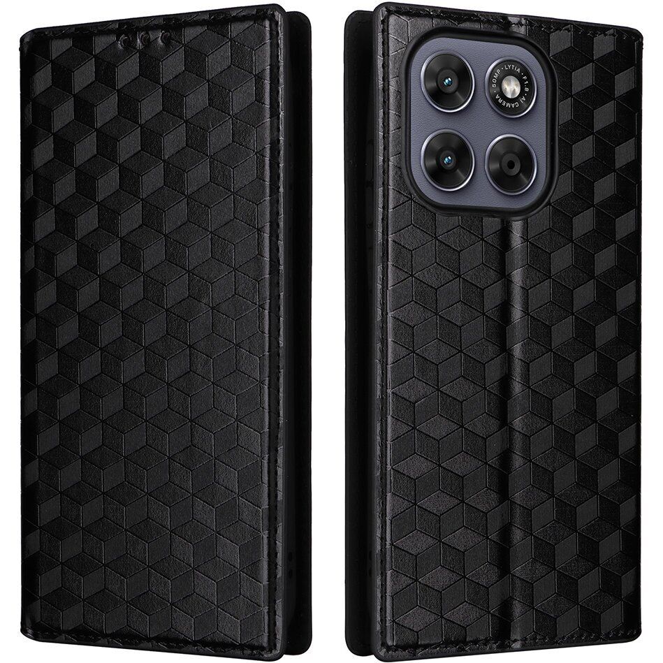 Чехол Deexe Rhombus Book для Motorola Moto G77 - Black