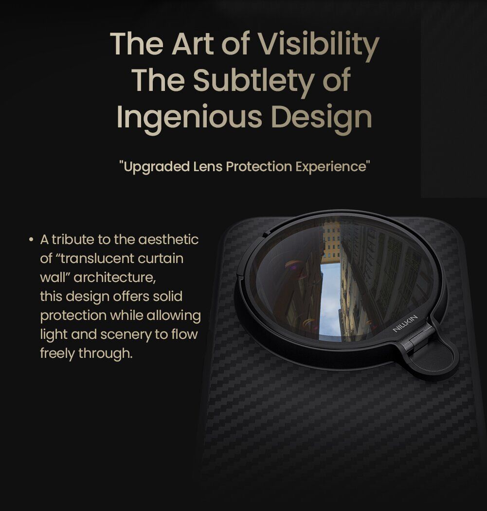 NILLKIN CarboProp Magnetic (FP) для Xiaomi 17 Ultra создан для тех, кто хочет сохранить аккуратный внешний вид смартфона и при этом получить практичное решение на каждый день. Конструкция сочетает арамидное волокно и TPU, создавая устойчивый корпус с аккуратной фактурой и геометрией. Прозрачная вставка над модулем камер одновременно защищает блок объективов и служит подставкой, позволяя удобно смотреть видео или участвовать в видеозвонках без необходимости держать телефон в руках. Металлические независимые клавиши подобраны таким образом, чтобы передавать естественный ход оригинальных кнопок и снижать износ механических элементов устройства. Встроенные магниты делают использование MagSafe-аксессуаров простым, обеспечивая надежное удержание без дополнительной фиксации. Тонкая форма корпуса подчеркивает линии смартфона и не увеличивает его размеры, сохраняя легкость и аккуратную посадку в руке.