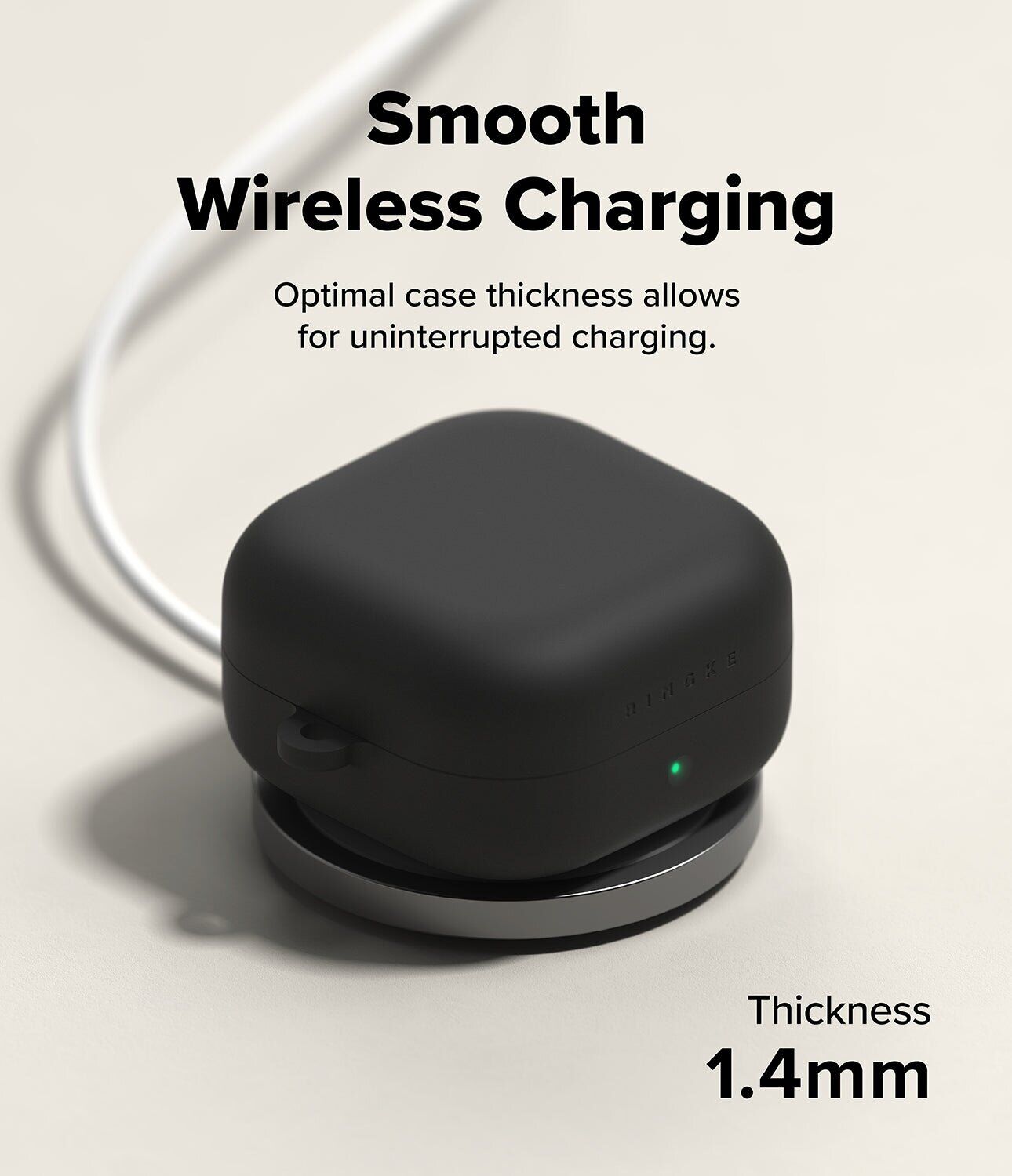 Защитный чехол Ringke Silicone Case для Samsung Galaxy Buds 4 / Buds 4 Pro сочетает в себе минималистичный дизайн, комфорт в использовании и эффективную защиту от повседневных повреждений. Чехол выполнен в формате slim-fit, благодаря чему плотно прилегает к зарядному кейсу, не увеличивая его габариты. Двухслойная конструкция объединяет мягкий силиконовый внешний слой и прочную основу из поликарбоната, обеспечивая дополнительную устойчивость к ударам, падениям и царапинам. Матовая силиконовая поверхность приятна на ощупь, не скользит в руке и устойчива к отпечаткам пальцев. Чехол помогает сохранить аккуратный внешний вид кейса даже при активном ежедневном использовании. Оптимальная толщина позволяет использовать беспроводную зарядку без необходимости снимать чехол, а точные вырезы обеспечивают свободный доступ к разъему и элементам управления.