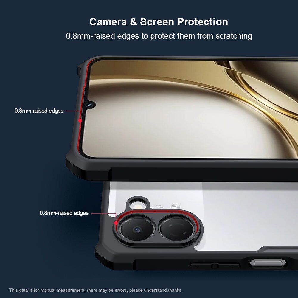 Чехол XUNDD Rugged Case — это надежная защита для TECNO Spark Go 3, сочетающая в себе элегантный дизайн и функциональность. Чехол состоит из двух компонентов: прозрачной жесткой задней панели и мягкого силиконового бампера, которые вместе формируют устойчивую к износу конструкцию с отличными амортизационными свойствами. Углы чехла усилены, что обеспечивает дополнительную защиту при падениях на углы или ребра. Все порты и функциональные элементы имеют специальные вырезы, а кнопки покрыты мягкими дубликаторами для их защиты. Края чехла слегка выступают за плоскость экрана, создавая защитный барьер, который позволяет безопасно класть телефон экраном вниз.