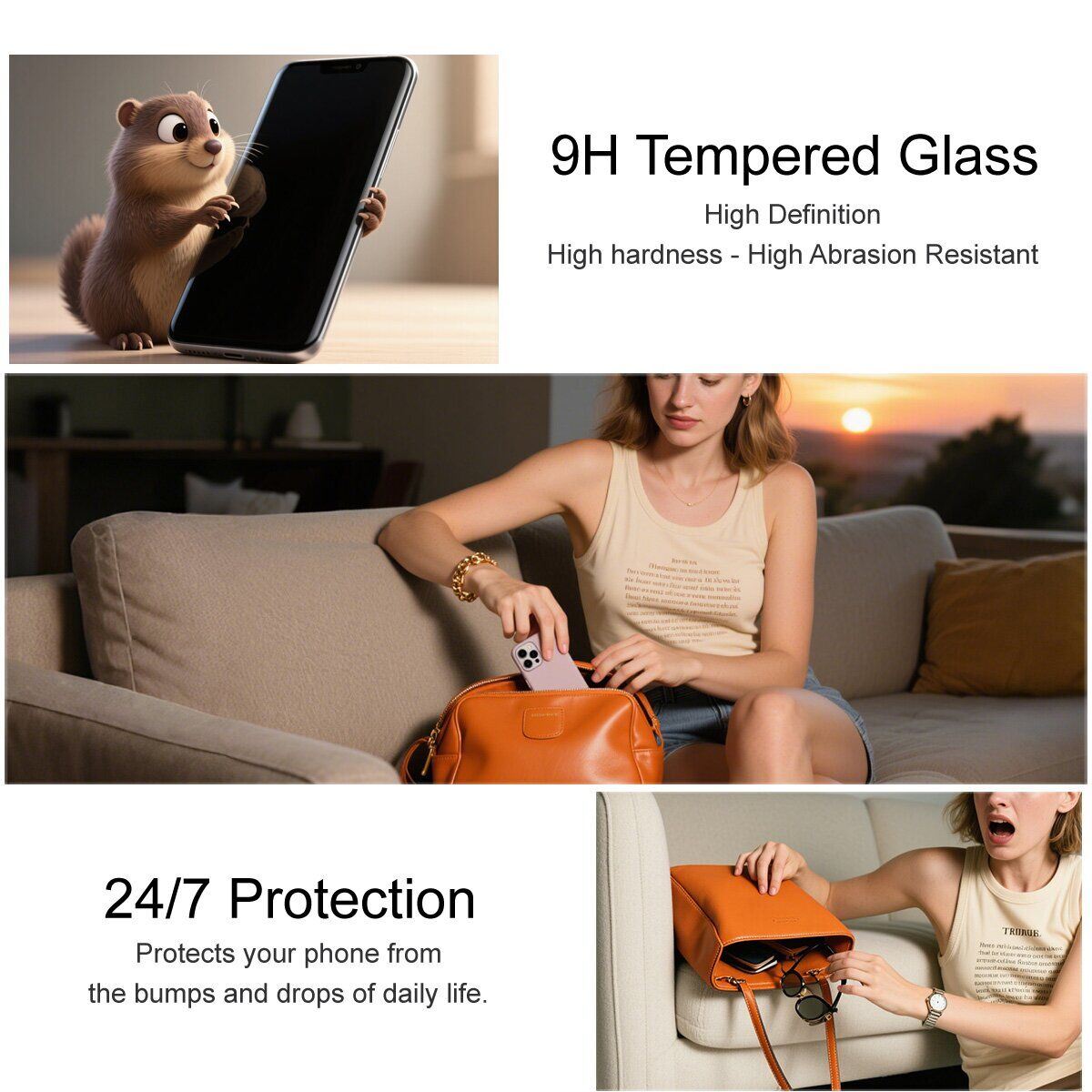 - Закаленное стекло устойчиво к появлению царапин и мелких повреждений, возникающих при повседневном контакте с ключами и другими предметами;