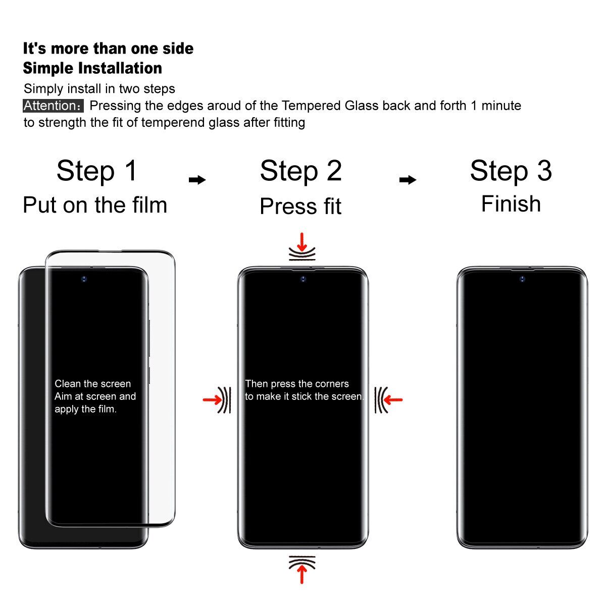 - Полное покрытие дисплея с учетом изогнутых краев экрана обеспечивает плотное прилегание по всей поверхности и аккуратный внешний вид устройства;