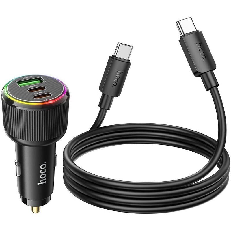 Автомобильное зарядное устройство Hoco NZ17 45W (USB + 2Type-C) + кабель Type-C to Type-C - Black