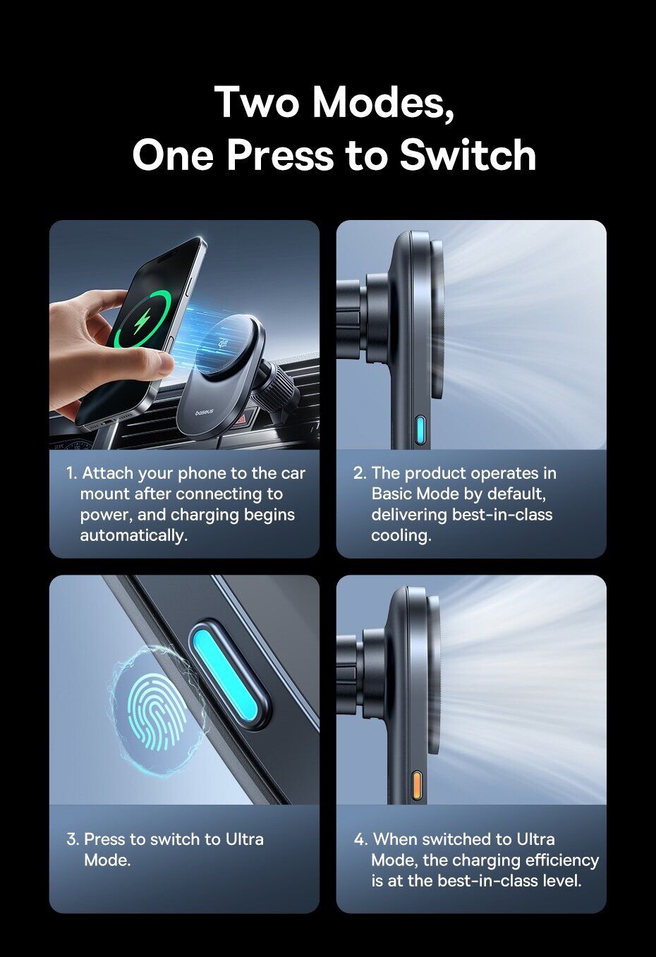 Особенности автомобильного держателя с функцией беспроводной зарядки Baseus PrimeTrip VC2 Pro (C0013N00):
