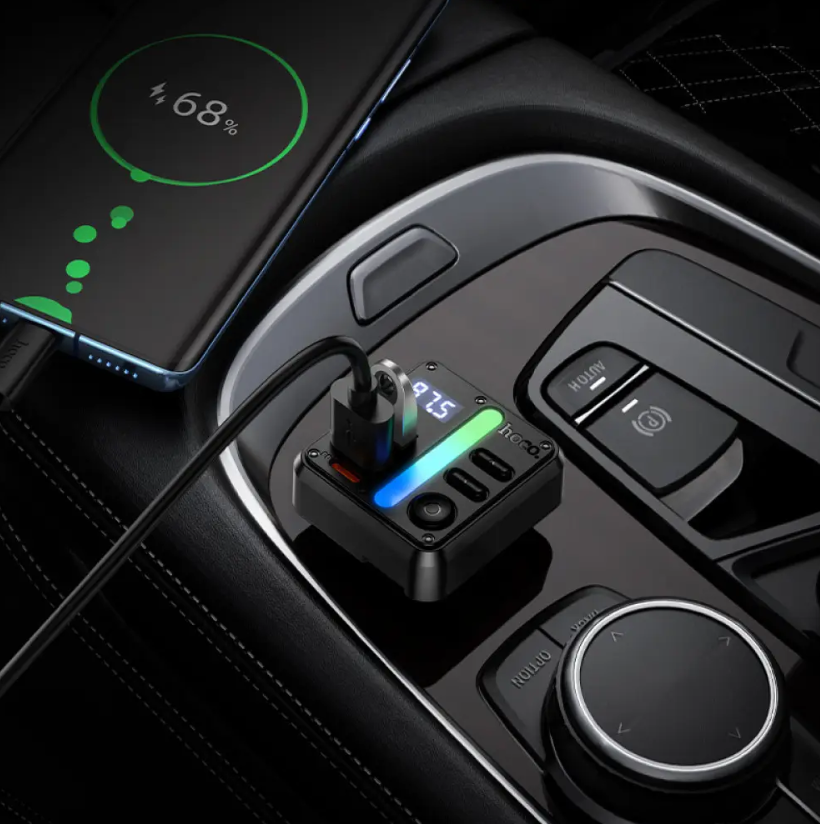 FM модулятор Hoco E89 PD30W (2USB + Type-C) – это автомобильный аксессуар, предназначенный для беспроводной передачи аудио и зарядки гаджетов в дороге. Устройство подключается к разъему прикуривателя и транслирует звук со смартфона на штатную акустическую систему через FM-частоту. Благодаря поддержке Bluetooth 5.4 обеспечивается устойчивое соединение и корректная передача звука без необходимости использования кабелей. На корпусе размещен информативный LED-дисплей, который отображает выбранную частоту и текущие параметры работы. Модель оснащена двумя USB-портами и разъемом Type-C, что позволяет подключать сразу несколько устройств. Поддержка быстрой зарядки через Type-C мощностью до 30W подходит для современных смартфонов и других гаджетов. Корпус изготовлен из сочетания ABS-пластика и поликарбоната, что обеспечивает надежность конструкции. Также предусмотрена возможность воспроизведения музыки с USB-накопителей и TF-карт. Компактные размеры позволяют удобно использовать устройство в салоне автомобиля.