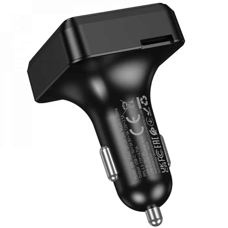 FM модулятор Hoco E89 PD30W (2USB + Type-C) - Black