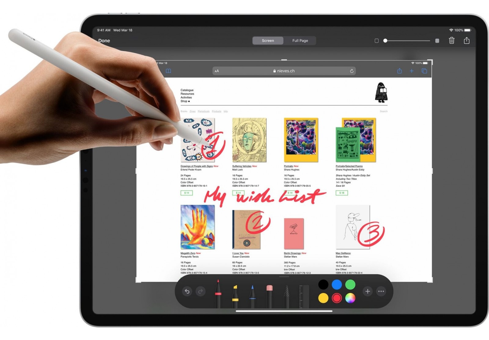 Экраны точно откалиброваны и отображают естественные цвета, что важно, например, при работе с изображениями, макетами для печати и другими подобными вещами. Запас яркости более чем достаточен — производитель заявляет о максимальном значении 600 нит. Этого должно хватить даже на улице в солнечный день. Есть поддержка частоты обновления 120 Гц, реализована технология автоматической подстройки цветовой температуры к условиям внешнего освещения True Tone. Рисовать, чертить, делать пометки в документах можно при помощи стилуса Apple Pencil 2-го поколения. Правда, в штатную комплектацию он не входит — его придётся заказывать отдельно.