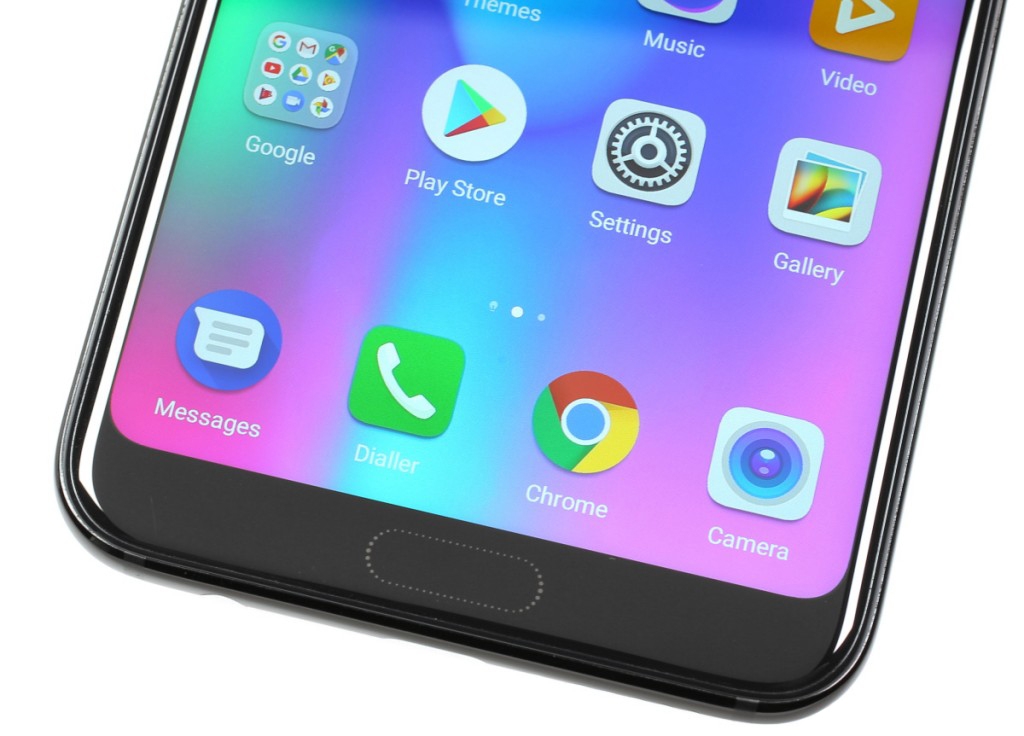 Ширина верхней рамки, если не считать выступа, равна ширине боковинок. Нижняя часть лицевой панели немного шире, так как там расположен ультразвуковой сканер отпечатков пальцев. Правда, он не имеет никаких выступов и спрятан под ровным стеклом, из-за чего вслепую нащупать его невозможно. Разблокировать устройство можно и модным сейчас способом по лицу владельца. Правда, в отличие от Apple iPhone X, где система разблокировки основана на специальных датчиках, в Honor 10 для этой цели используется фронтальная фотокамера.