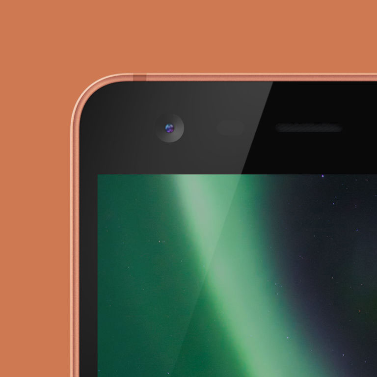 Лицевая панель закрыта 2.5D-стеклом Corning Gorilla Glass 3 и окрашена в тот же цвет, что и задняя крышка, то есть в чёрный или белый. Чёрный вариант может иметь торцы оловянного или медного оттенка, в белом исполнении они только оловянные.