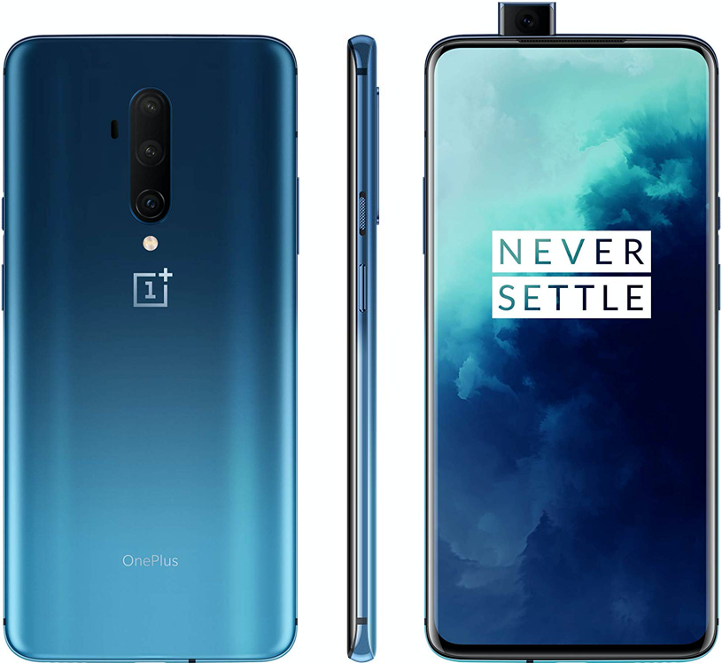 А вот спереди явное преимущество у OnePlus 7T Pro, хотя он и не изменился по сравнению с предшественником. Зато здесь имеется изогнутый по бокам дисплей без выреза в верхней части, поскольку фронтальная камера прячется в выдвижном блоке на верхнем торце. Он автоматически выдвигается при запуске приложения для съёмки селфи или видеочата, а также защищён от повреждений при падении телефона. При поступлении с датчиков информации о нахождении аппарата в свободном полёте модуль фронтальной камеры будет экстренно задвинут внутрь корпуса. OnePlus 7T спереди исполнен проще, но в соответствии с последними трендами, то есть имеет тонкие рамки и каплевидный вырез для «фронталки».
