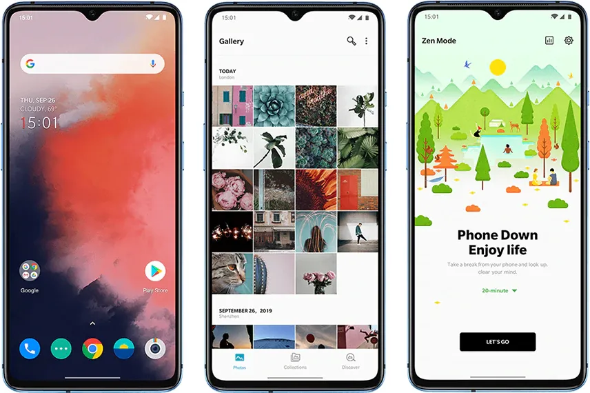 OnePlus 7T и 7T Pro — первые смартфоны, прямо с завода работающие под управлением операционной системы Android 10. Поверх неё установлена фирменная оболочка Oxygen OS, которую многие считают лучшей программной надстройкой для Android в плане оптимизации. Для геймеров в ней имеется особый режим Fnatic Mode, отключающий уведомления и вторую SIM-карту для более стабильной работы 4G-интернета, а также настраивает максимальную производительность процессора и графики, чтобы даже в результате длительной игры в ресурсоёмкую игру пользователь не ощущал троттлинг.
