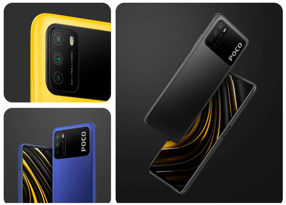 Poco M3 поставляется в трёх цветовых исполнениях — жёлтом, синем и чёрном.