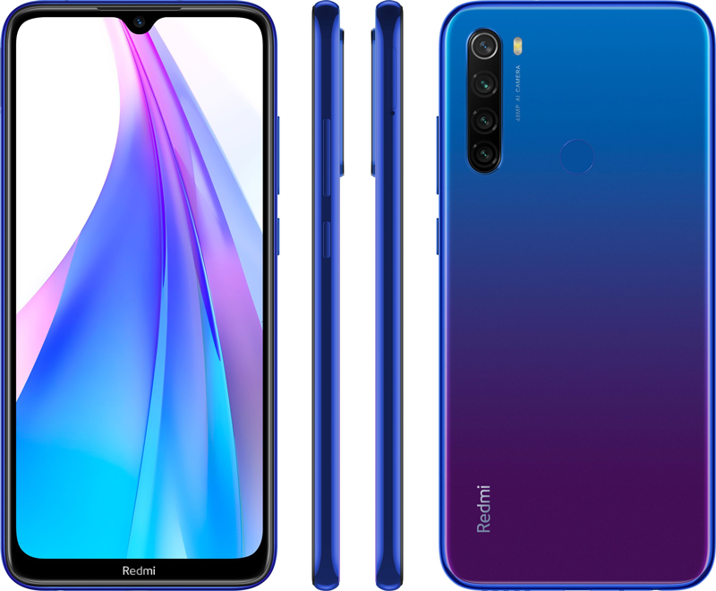 Цветовых вариантов оформления корпуса телефона три — синий, белый и тёмно-серый, почти чёрный. Как требует современная мода, окраска градиентная, но без замысловатых узоров, которые можно было видеть на тыльной панели Redmi Note 8. В остальном же дизайн и расположение функциональных элементов идентичное.