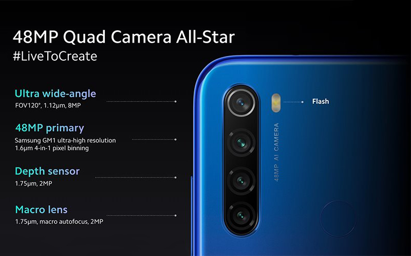 Redmi Note 8T — очередной смартфон с 48-мегапиксельной основной камерой. Модуль оснащён фазовым автофокусом и светосильным объективом с диафрагмой f/1,8. Кроме него на тыльной панели расположены 8-Мп сверхширокоугольный сенсор, 2-Мп макромодуль и 2-Мп датчик глубины для создания эффекта боке на портретных снимках.