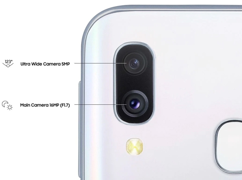 Самый продвинутая тыльная камера досталась, разумеется, Galaxy A50. Она состоит из трёх модулей — основного 25 Мп (f/1,7, PDAF), сверхширокоугольного 8 Мп (f/2,2) и 5 Мп датчика глубины, используемого для отделения фона от объекта во время портретной съёмки с эффектом боке. Galaxy A30 и A40 имеют одинаковые двойные камеры, состоящие из 16 Мп главного сенсора (f/1,7, PDAF) и дополнительного 5 Мп со сверхширокоугольной оптикой (f/2,2).