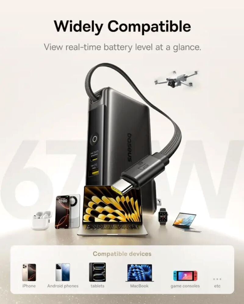 Особливості зовнішнього акумулятора Baseus Nomos NT11 67W (10000mAh) + кабель Type-C (P10078807123-00):