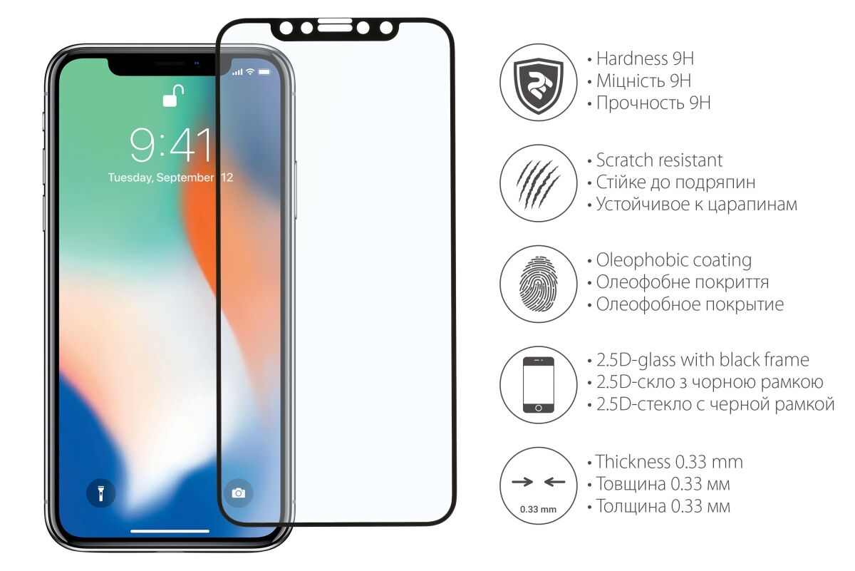 Захисне скло 2E Full Cover для iPhone X / iPhone XS - Black