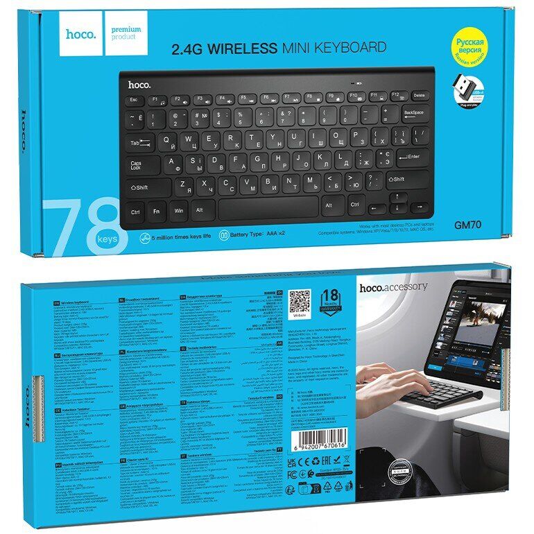 Бездротова клавіатура Hoco GM70 - Black (995800B). Фото 6 з 8Бездротова клавіатура Hoco GM70 - Black (995800B). Фото 7 з 8Бездротова клавіатура Hoco GM70 - Black (995800B). Фото 8 з 8