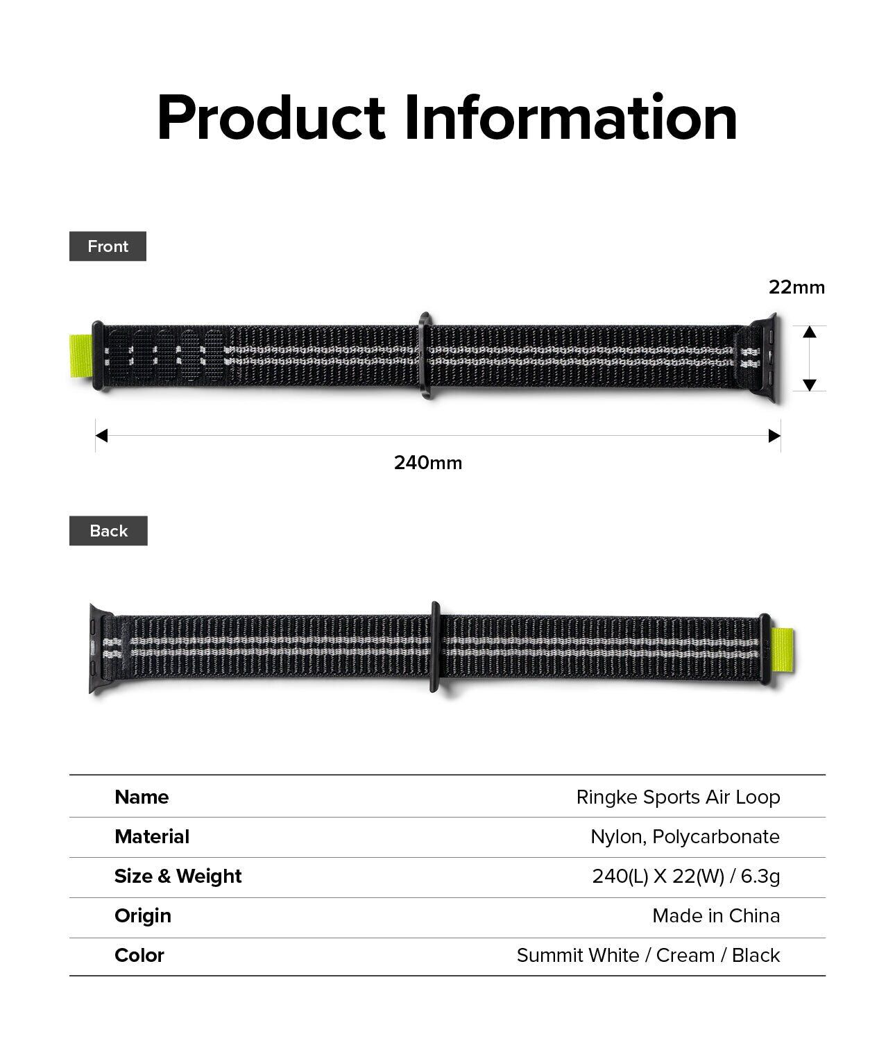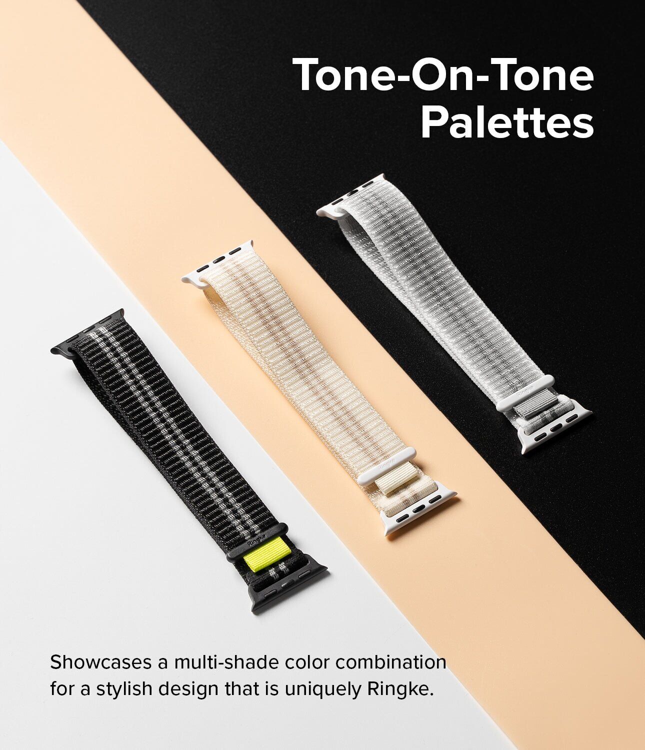 Ремінець Ringke Sports Air Loop для Apple Watch 42 (Series 10/11) / 41 / 40 / SE 40 / 38 — це легке та зручне рішення для повсякденного та спортивного використання Apple Watch. Завдяки м’якому нейлоновому плетінню він практично не відчувається на руці та забезпечує комфорт навіть під час тривалого носіння. Дихаюча текстурована тканина ефективно відводить вологу і швидко висихає, що особливо важливо під час тренувань або активного дня. Матеріал приємний на дотик і створює м'яку, «пружну» посадку без тиску на зап'ястя. Ремінець оснащений зручною застібкою на липучці (hook-and-loop), яка дозволяє швидко одягати та знімати його, а також точно регулювати розмір під будь-яку руку. Додаткова текстильна петля полегшує фіксацію та зняття. Встановлення максимально просте — завдяки полікарбонатним кріпленням ремінець легко вставляється в корпус годинника без використання інструментів.