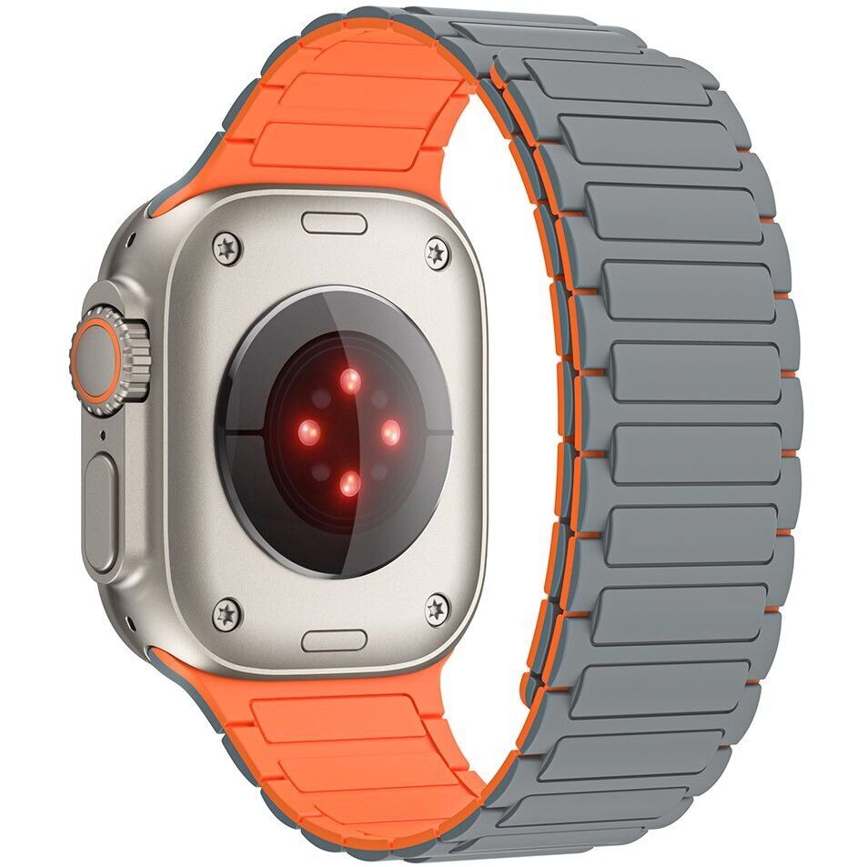 Ремінець Deexe Magnetic Band для Apple Watch 46 / 45 / 44 / SE 44 / 42 (Series 1-3) / Ultra / Ultra 2 / Ultra 3 - Grey / Orange
