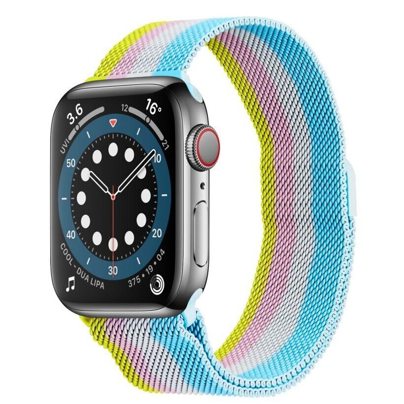 Ремінець Deexe Rainbow Loop для Apple Watch 46 / 45 / 44 / SE 44 / 42 (Series 1-3) / Ultra / Ultra 2 / Ultra 3 - це елегантний аксесуар, який зможе доречно доповнити будь-який образ і буде витончено виглядати на вашому зап'ясті. Аксесуар виготовляється з якісної нержавіючої сталі, завдяки чому зможе прослужити тривалий час, не втрачаючи свої первісні характеристики. Ремінець має гарну еластичність і гнучкість, що робить його максимально зручним в носінні кожен день. Надійна магнітна застібка швидко і просто фіксує годинник на руці, запобігає мимовільному розстібанню ремінця. Довжина аксесуара регулюється, а тому зможе підійти практично для будь-якого зап'ястя.