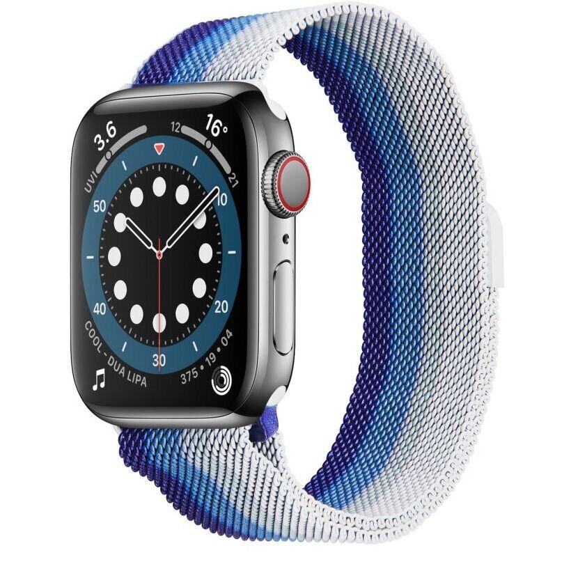 Ремінець Deexe Rainbow Loop для Apple Watch 46 / 45 / 44 / SE 44 / 42 (Series 1-3) / Ultra / Ultra 2 / Ultra 3 - це елегантний аксесуар, який зможе доречно доповнити будь-який образ і буде витончено виглядати на вашому зап'ясті. Аксесуар виготовляється з якісної нержавіючої сталі, завдяки чому зможе прослужити тривалий час, не втрачаючи свої первісні характеристики. Ремінець має гарну еластичність і гнучкість, що робить його максимально зручним в носінні кожен день. Надійна магнітна застібка швидко і просто фіксує годинник на руці, запобігає мимовільному розстібанню ремінця. Довжина аксесуара регулюється, а тому зможе підійти практично для будь-якого зап'ястя.