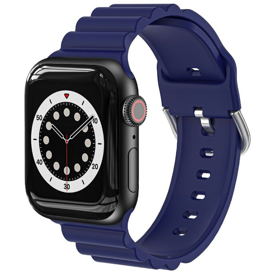Ремінець Deexe Stripes Series для Apple Watch 46 / 45 / 44 / SE 44 / 42 (Series 1-3) / Ultra / Ultra 2 / Ultra 3 виконаний з якісного силікону, який відмінно поєднується як з класичним стилем в одязі, так і зі спортивним. Такий матеріал має істотну перевагу в експлуатації перед шкіряними і тканинними ремінцями, тому що не боїться води, не вимагає частої заміни, легко миється від різних забруднень і дуже зносостійкий. Створений для максимального комфорту, він має ребристу поверхню із внутрішньої сторони, завдяки чому між аксесуаром та зап'ястям залишається простір для вентиляції повітря. З зовнішнього боку він має більшу об'ємну ребристу фактуру, яка в цьому випадку виконує дизайнерську функцію, вигідно виділяючи аксесуар на тлі інших подібних.