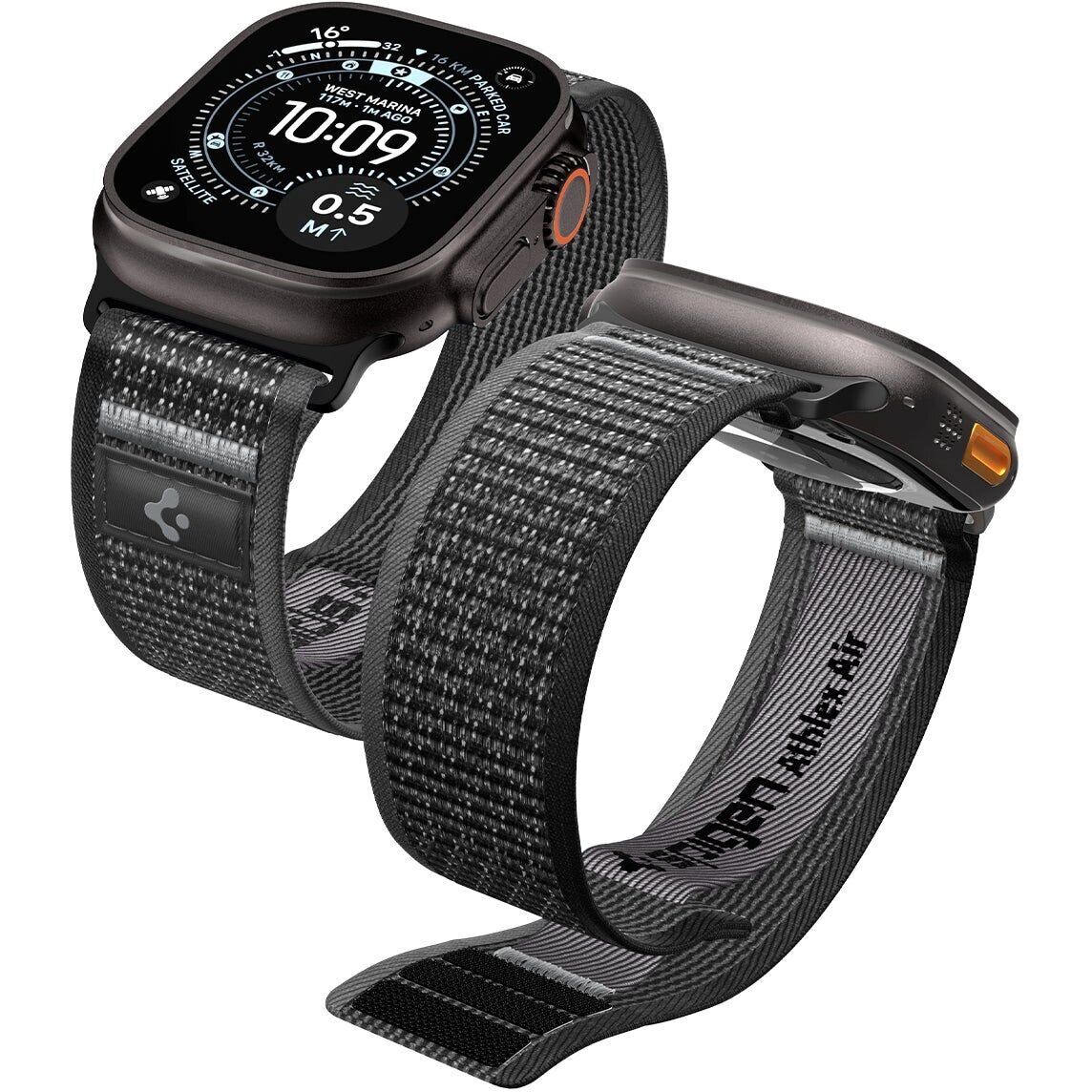 Ремінець Spigen Athlex Air 2 для Apple Watch 46 / 45 / 44 / SE 44 / 42 (Series 1-3) / Ultra / Ultra 2 / Ultra 3 — аксесуар, що поєднує в собі міцність, комфорт і сучасний спортивний стиль. Модель виготовлена з якісного тканинного матеріалу, який відрізняється високою зносостійкістю та зберігає привабливий зовнішній вигляд навіть при активній експлуатації. Легка та дихаюча структура забезпечує комфортне носіння протягом усього дня, запобігаючи перегріванню та подразненню шкіри. Ремінець зручно регулюється під різні розміри зап'ястя завдяки надійній застібці на липучці, забезпечуючи щільну та безпечну фіксацію. Еластична та гнучка конструкція робить його чудовим вибором як для повсякденного використання, так і для занять спортом, а акуратний дизайн з контрастними елементами підкреслює стиль пристрою.