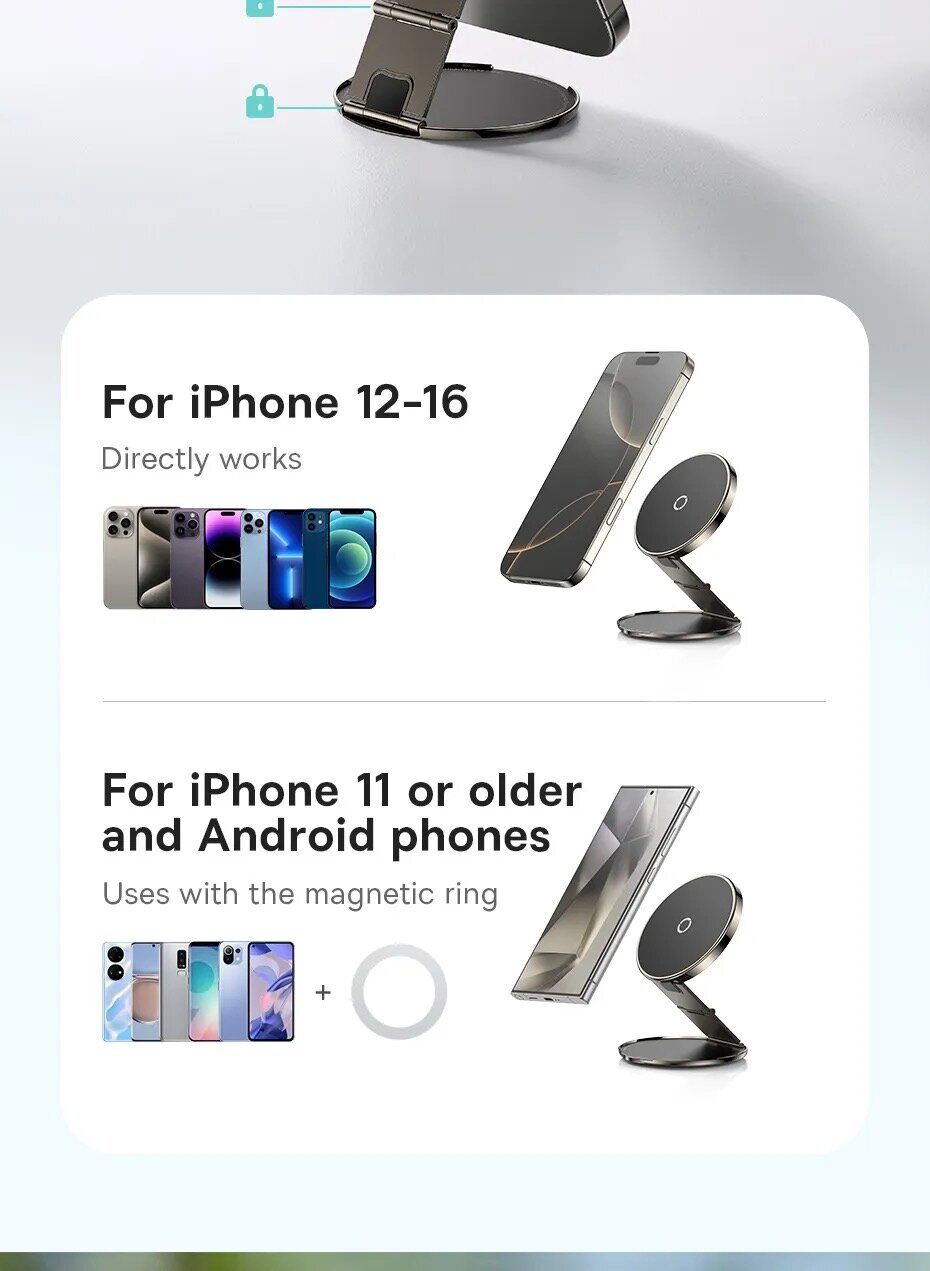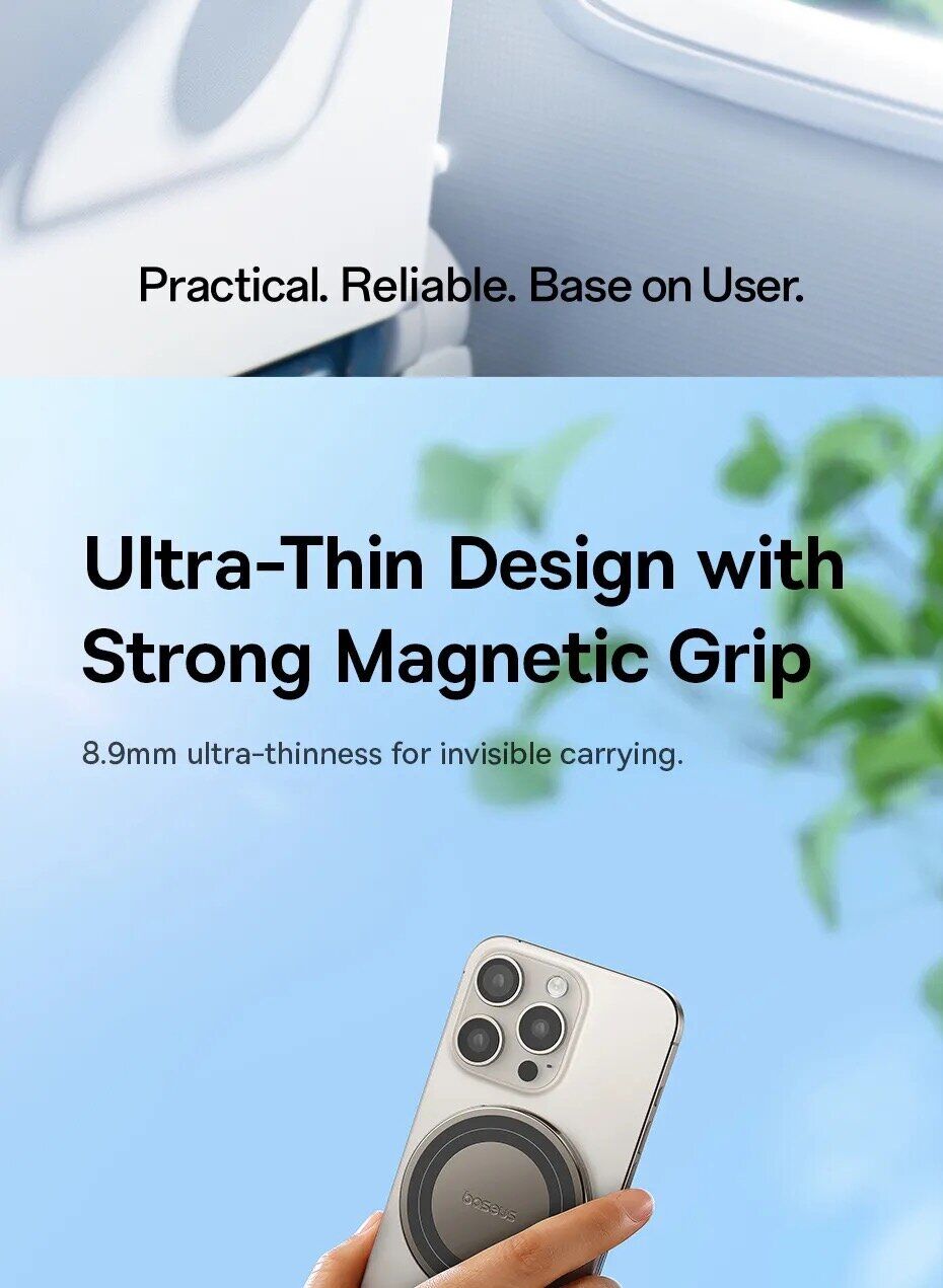 • Сумісний з MagSafe, може фіксуватися на смартфоні за допомогою магнітного кільця;