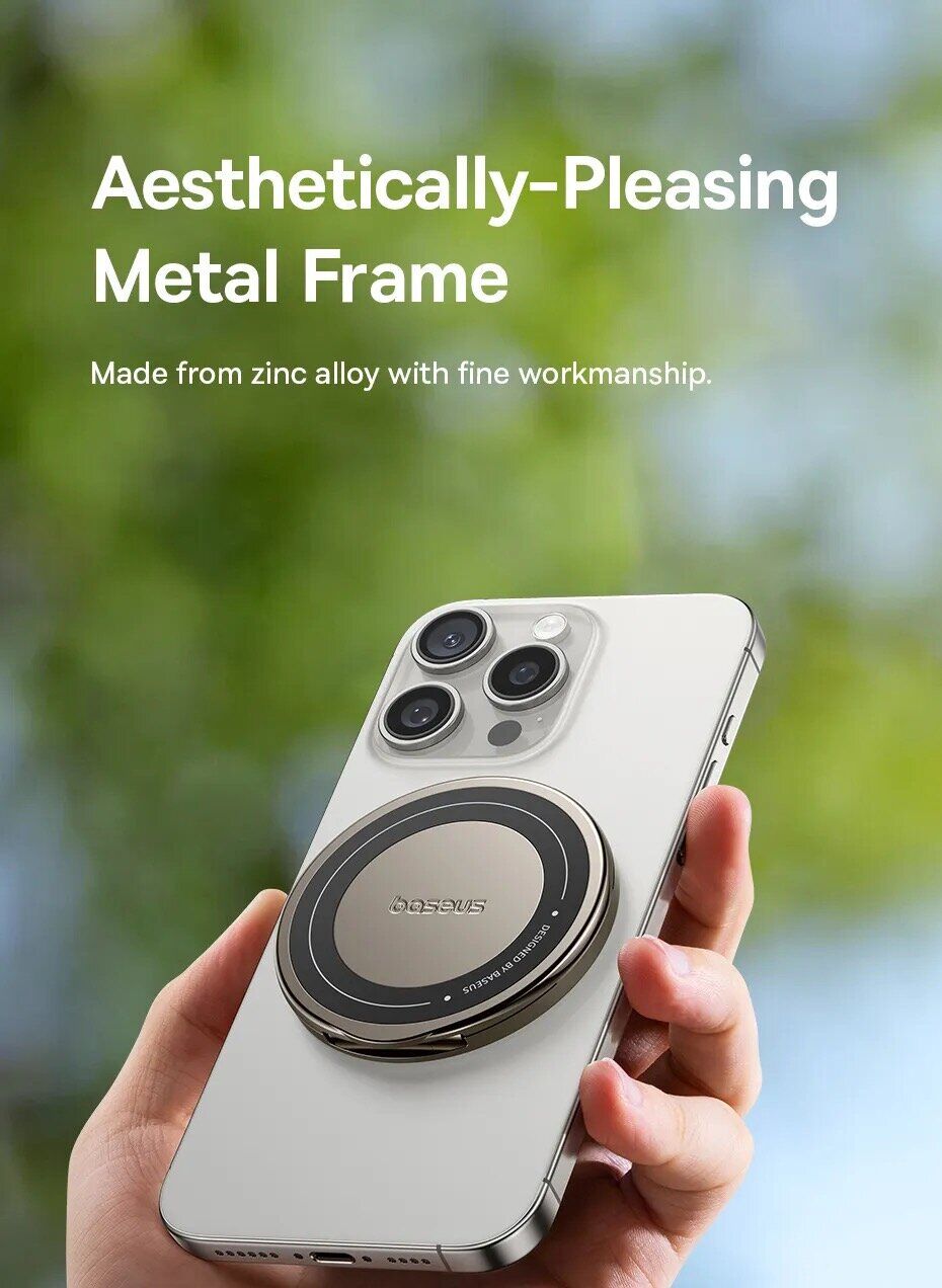 Магнітний тримач Baseus PrimeTrip VX1 (C4016900C123-00) — це універсальний і компактний аксесуар для подорожей, роботи та повсякденного використання, створений для зручної фіксації смартфона в будь-якому положенні. Продумана складна конструкція з трьома осями дозволяє легко адаптувати кут огляду під різні сценарії — перегляд відео, навігацію, відеодзвінки або роботу за столом. Надійна магнітна система забезпечує стабільне утримання пристрою, а можливість обертання на 360° робить використання максимально гнучким і комфортним. Корпус виконаний з міцного цинкового сплаву, що надає тримачу преміальний зовнішній вигляд, стійкість до зносу і довговічність. Компактний формат дозволяє брати Baseus PrimeTrip VX1 з собою в дорогу, економлячи місце в сумці і робочому просторі, при цьому аксесуар залишається стильним і практичним елементом повсякденної екосистеми.