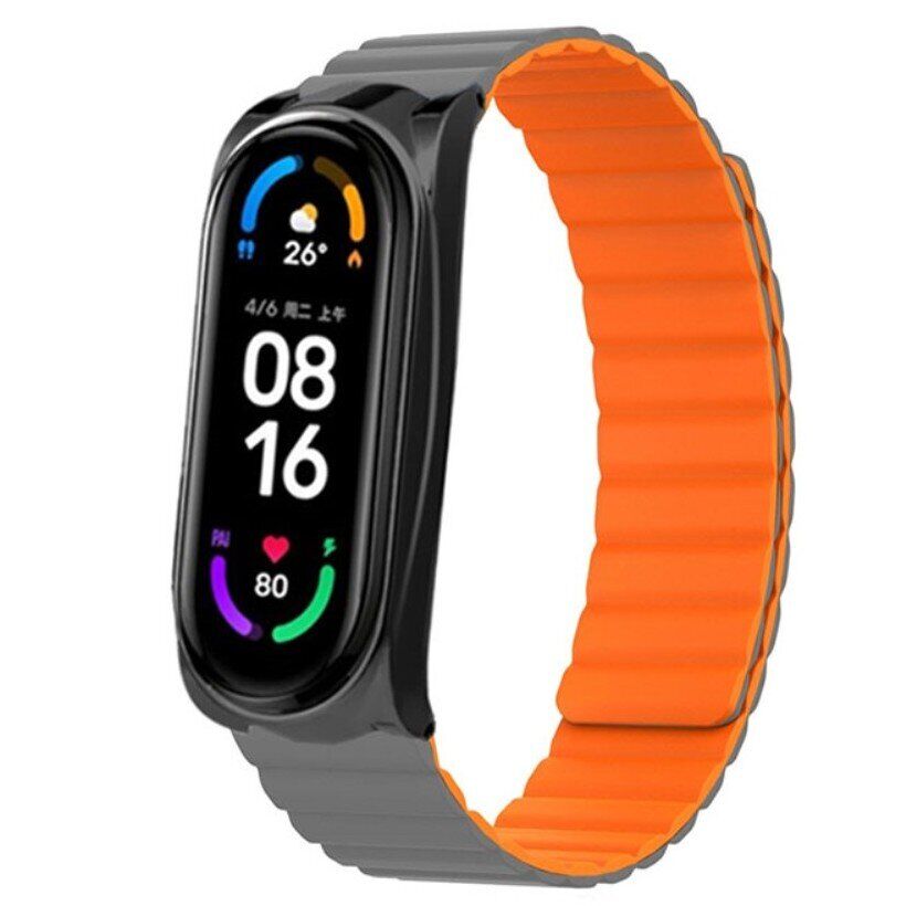 Ремінець Deexe Soft Chain для Xiaomi Mi Band 5 / Mi Band 6 / Mi Band 7 - Grey / Orange
