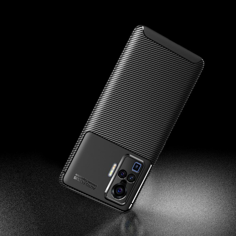 Чохол Deexe Fusion виконаний у форм-факторі "накладка" і стане відмінним захисним рішенням для VIVO X50 Pro, убезпечуючи корпус від бруду та пошкоджень, істотно його при цьому не потовщуючи. Основним матеріалом тут виступає еластичний силікон (TPU), високі амортизаційні властивості якого дозволяють добре пом'якшувати удари у разі падіння на підлогу, запобігаючи утворенню тріщин і сколів. Зовнішнє покриття має ефектну карбонову текстуру, яка не тільки стильно виглядає, але й приємна на дотик і не зберігає на собі відбитки.