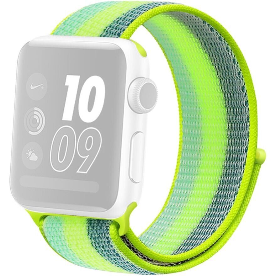 Ремінець Deexe Nylon Loop для Apple Watch 46 / 45 / 44 / SE 44 / 42 (Series 1-3) / Ultra / Ultra 2 / Ultra 3 - Stripe Green