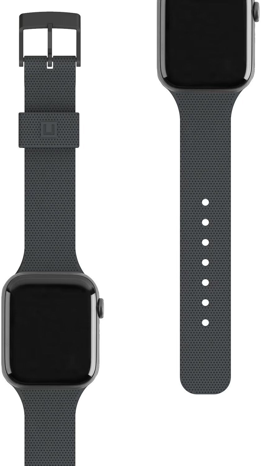 URBAN ARMOR GEAR (UAG) [U] Dot Silicone - це ремінець преміум-класу від всесвітньо відомої компанії, який стане відмінним придбанням для занять спортом з Apple Watch 46 / 45 / 44 / SE 44 / 42 (Series 1-3) / Ultra / Ultra 2 / Ultra 3 або просто їх щоденної експлуатації. В його основі лежить м'який гіпоалергенний силікон (TPU), стійкий до розтягування і розриву, а також дуже приємний на шкірі. Додаткову зручність носіння забезпечує перфорація, що покриває всю поверхню ремінця і дозволяє шкірі дихати. Фурнітура виконана з міцної нержавіючої сталі. Механізм застібки - класичний, що забезпечить зручне надягання / зняття і впевнену фіксацію.