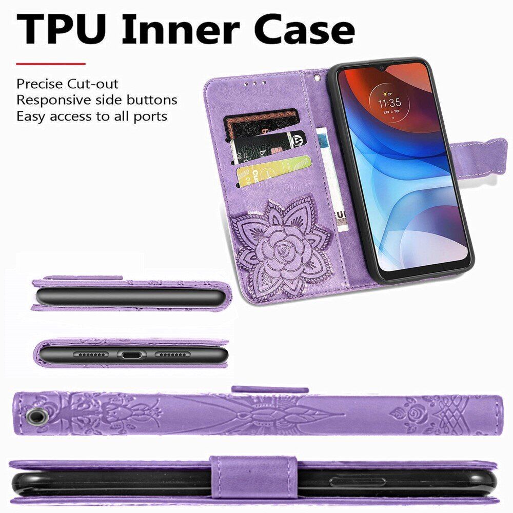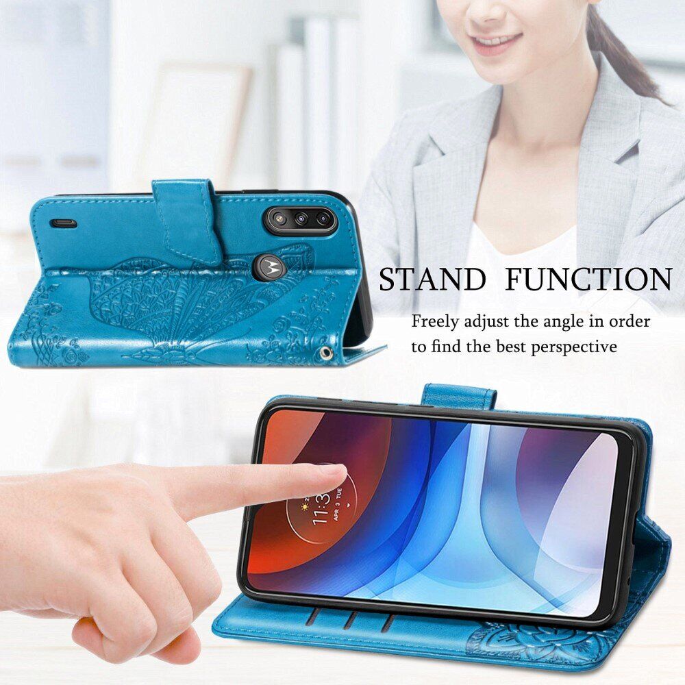 Захисний чохол UniCase Butterfly Pattern виконаний у форм-факторі "книжка" і зможе забезпечити повноцінний всебічний захист Motorola Moto E7 Power / Moto E7i / Moto E7i Power від бруду та пошкоджень. Екстравагантний дизайн з ефектним декоративним тисненням вигідно виділить апарат із загальної маси та привнесе родзинку в ваш образ. Основним матеріалом тут виступає синтетична шкіра, поверхня якої приємна на дотик і не зберігає відбитки. Конструкцію доповнює силіконовий (TPU) тримач, який щільно фіксує пристрій і захистить його від ударів при падіннях на підлогу. На внутрішній поверхні розміщений ряд кишеньок, в які можна заховати кредитки, візитні картки або банкноти. Спеціальна магнітна клямка щільно фіксує верхню кришку, коли ви не користуєтесь смартфоном. При необхідності, чохол може складатися в зручну підставку для перегляду відео.