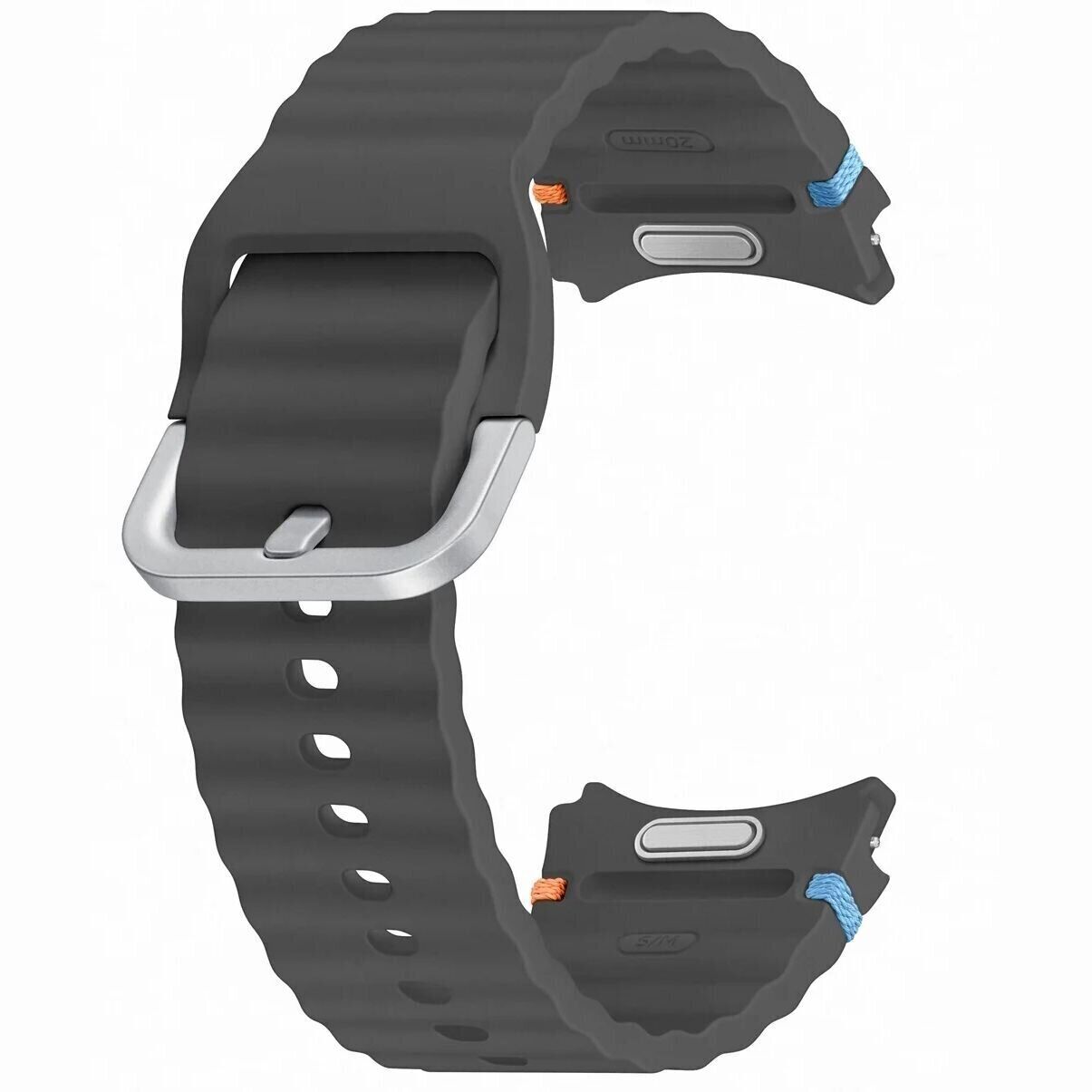 Оригінальний ремінець Sport Band для Samsung Galaxy Watch 4 / 4 Classic / 5 / 5 Pro / 6 / 6 Classic / 7 / FE виконаний у сучасному стилі та виготовлений із матеріалу з характерною хвилястою текстурою й акуратними кольоровими акцентами. Поверхня приємна на дотик і комфортно відчувається на руці навіть під час тривалого носіння. Матеріал залишається м’яким і еластичним, не створюючи дискомфорту та знижуючи ймовірність подразнення шкіри при щоденному використанні.