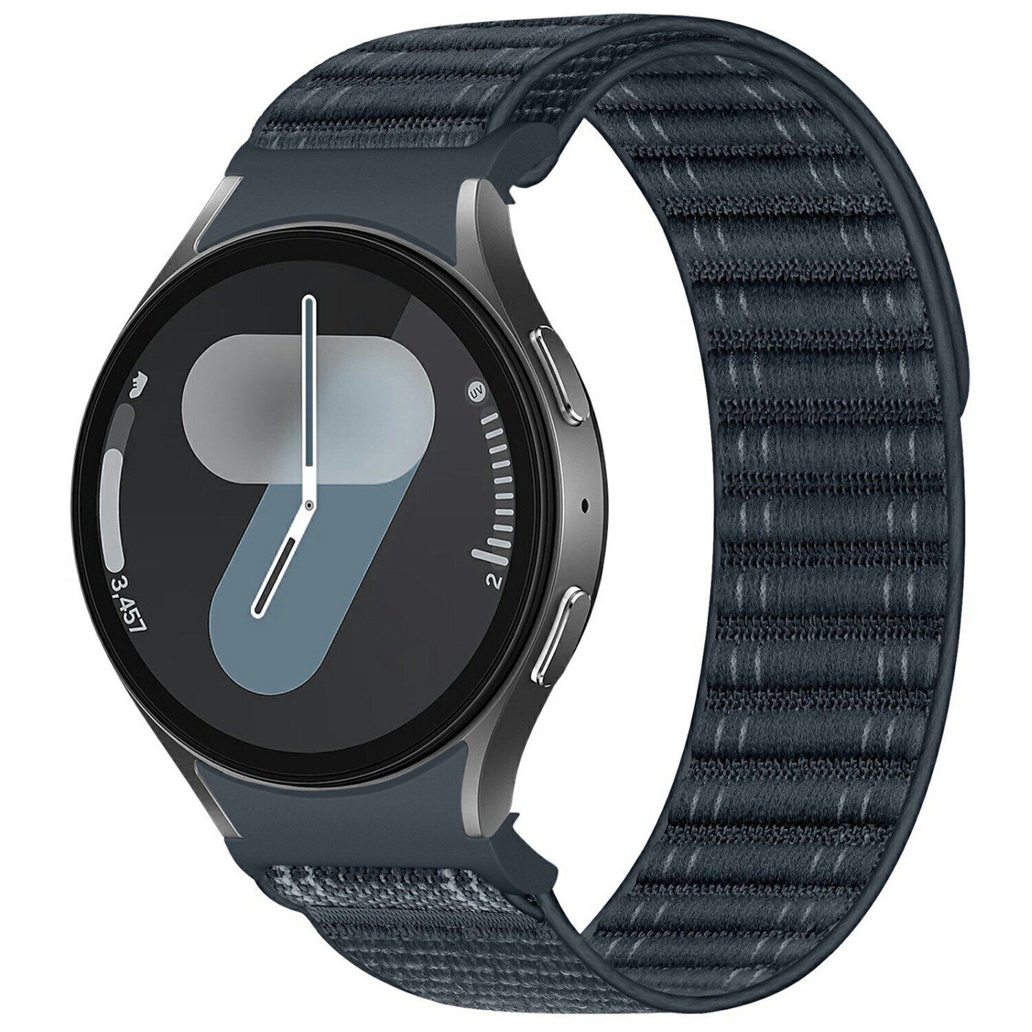 Ремінець Reframe Sprint для Samsung Galaxy Watch 4 / 4 Classic / 5 / 5 Pro / 6 / 6 Classic / 7 / FE розроблений як змінний аксесуар для смарт-годинника і дозволяє оновити зовнішній вигляд пристрою, зберігаючи зручність використання. Модель виконана з щільного нейлону з м'якою текстурою, який поєднує гнучкість і стійкість до повсякденного зносу, не втрачаючи форму з часом. Дихаюча структура матеріалу сприяє циркуляції повітря і допомагає зменшити накопичення тепла при тривалому носінні. Поверхня доповнена хвилеподібним рельєфом, завдяки чому ремінець виглядає фактурно і акуратно поєднується як зі спортивним, так і з повсякденним стилем. Фіксація здійснюється за допомогою застібки на липучці, що спрощує надягання і дозволяє точно налаштувати довжину без пряжок і отворів. Кнопковий механізм швидкого зняття полегшує установку і заміну ремінця без додаткових інструментів, а стандартне кріплення забезпечує коректну посадку і сумісність з декількома поколіннями годинників серії Galaxy Watch. Така конструкція підходить для роботи, прогулянок і активного руху, зберігаючи стабільне положення пристрою на зап'ясті.